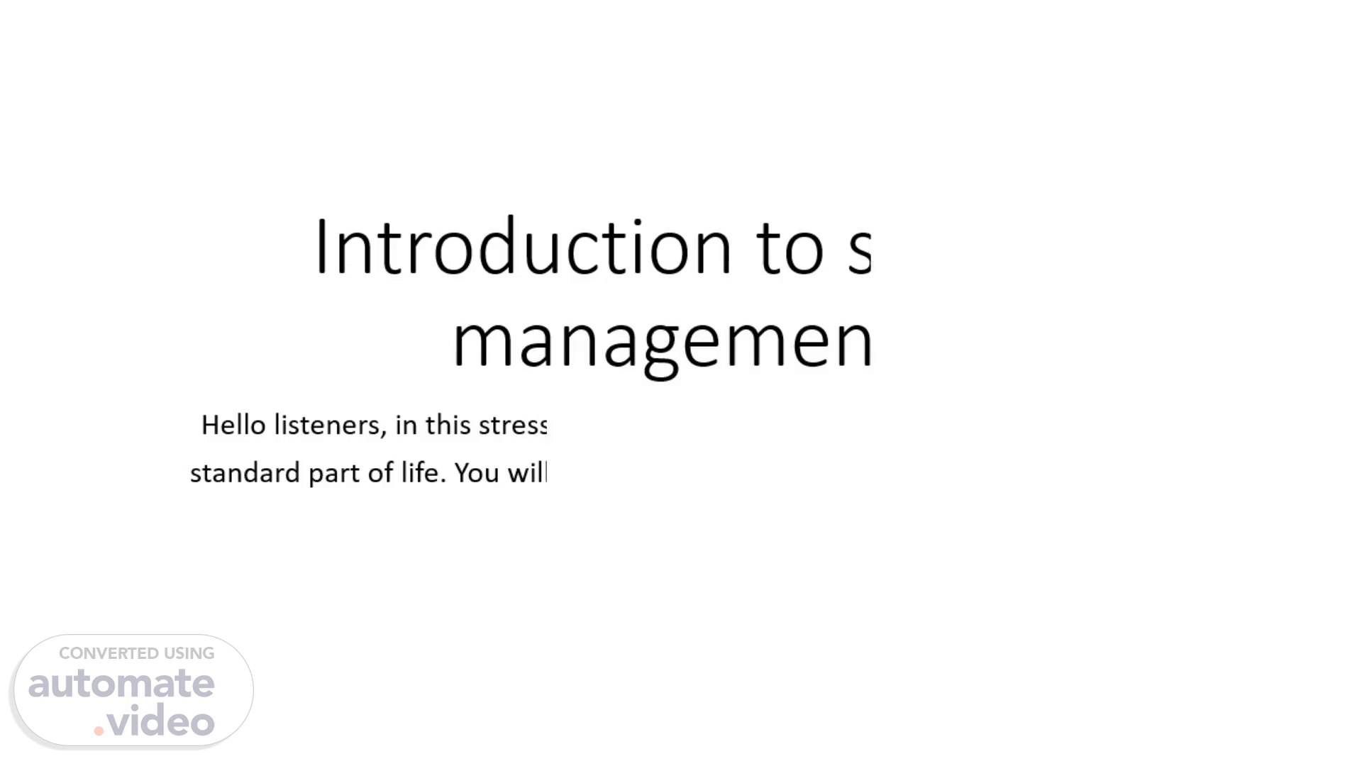 undefined. Introduction to stress management. Hello listeners, in this stress management session, we understand stress is a standard part of life. You will learn about the root causes of stress and how to cope with them..