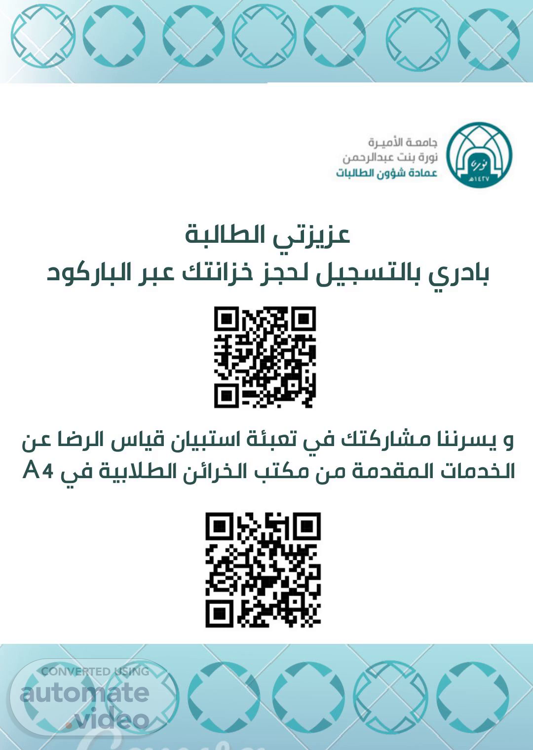 ﺔﺒﻟﺎﻄﻟا ﻲﺗﺰﻳﺰﻋ دﻮﻛرﺎﺒﻟا ﺮﺒﻋ ﻚﺘﻧاﺰﺧ ﺰﺠﺤﻟ ﻞﻴﺠﺴﺘﻟﺎﺑ يردﺎﺑ ﻦﻋ ﺎﺿﺮﻟا سﺎﻴﻗ نﺎﻴﺒﺘﺳا ﺔﺌﺒﻌﺗ ﻲﻓ ﻚﺘﻛرﺎﺸﻣ ﺎﻨﻧﺮﺴﻳ و A4 ﻲﻓ ﺔﻴﺑﻼﻄﻟا ﻦﺋاﺮﺨﻟا ﺐﺘﻜﻣ ﻦﻣ ﺔﻣﺪﻘﻤﻟا تﺎﻣﺪﺨﻟا.
