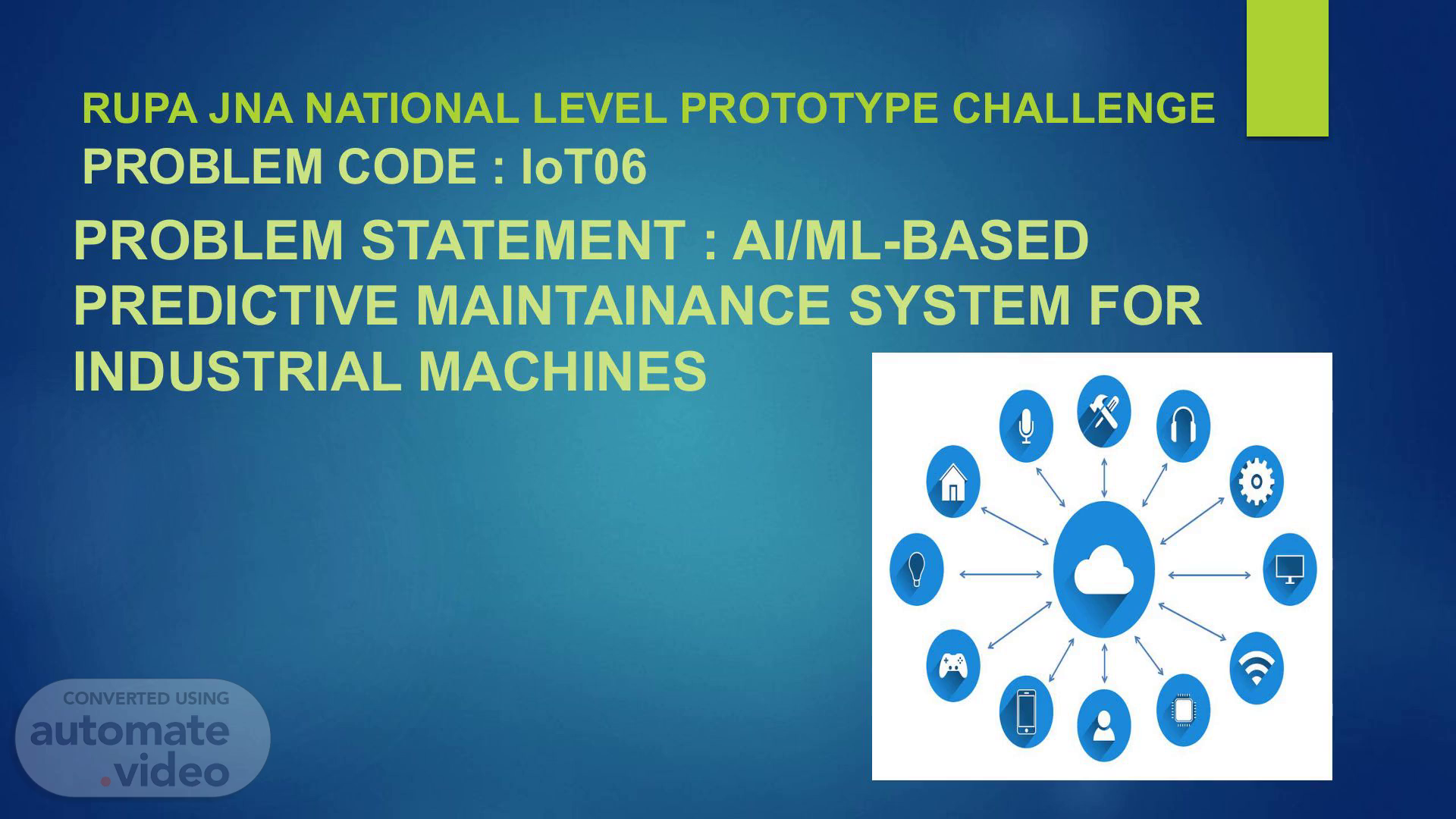 [Audio] RUPA JNA NATIONAL LEVEL PROTOTYPE CHALLENGE PROBLEM CODE : IoT06 PROBLEM STATEMENT : AI/ML-BASED PREDICTIVE MAINTAINANCE SYSTEM FOR INDUSTRIAL MACHINES.
