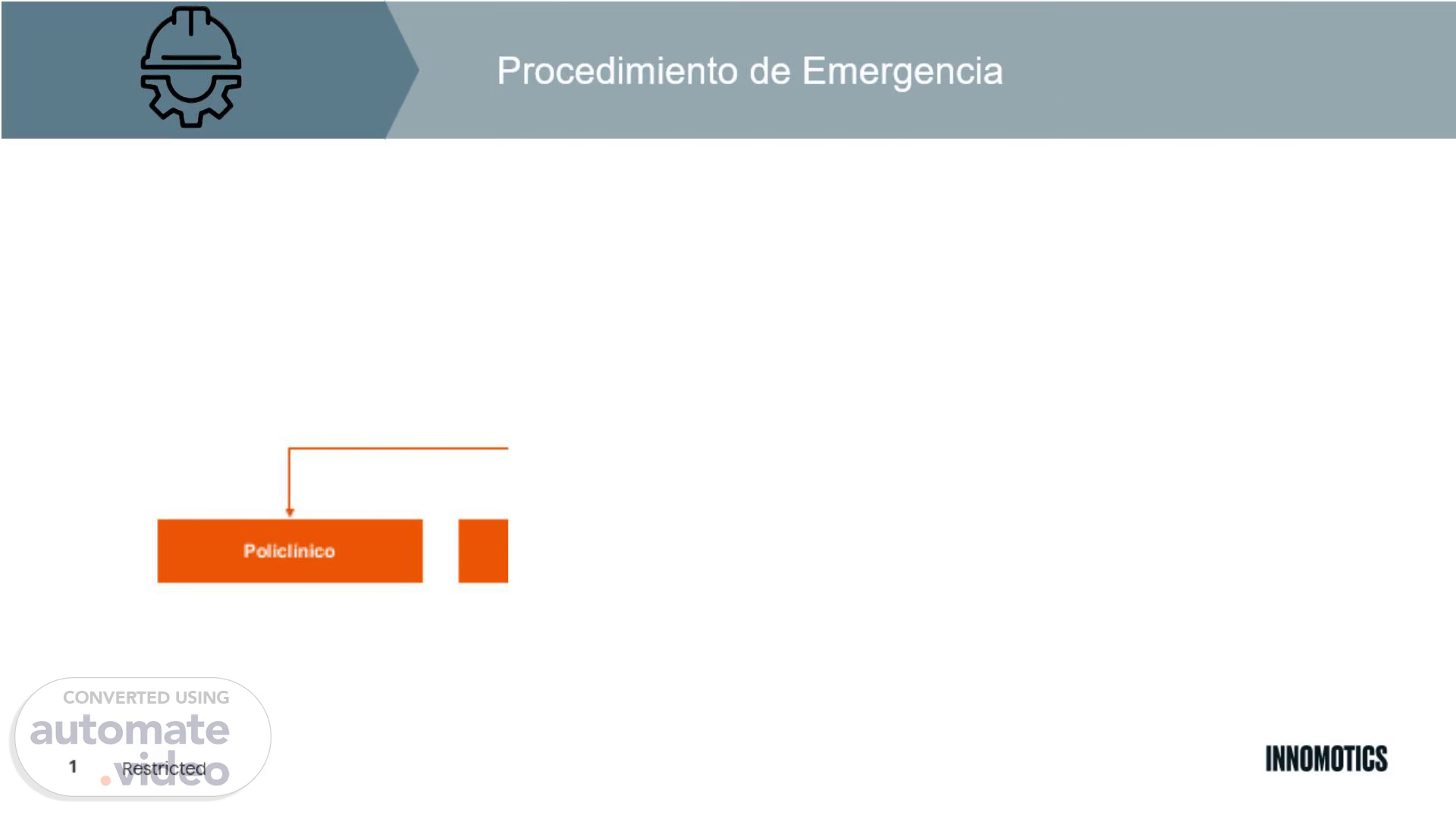 [Audio] En el año 2025, el Policlinico ha desarrollado un procedimiento para situaciones de emergencia con el objetivo de prevenir riesgos y contar con un equipo de respuesta inmediata. Este canal y equipo de emergencia han sido desarrollados por el equipo de Innomotics, encabezado por Valeria Olivares López. El procedimiento ha sido publicado y está disponible para ser implementado en el Policlinico. En caso de una emergencia, se puede contactar al equipo de Innomotics a través de los datos proporcionados en la diapositiva número 20 de nuestra presentación. Para cualquier consulta o asistencia, Valeria Olivares López está disponible a través del correo electrónico o número de teléfono que aparecen en pantalla. Agradecemos a la audiencia por su atención y les recordamos la importancia de estar preparados para cualquier situación de emergencia en el Policlinico. Gracias por su participación en esta presentación..