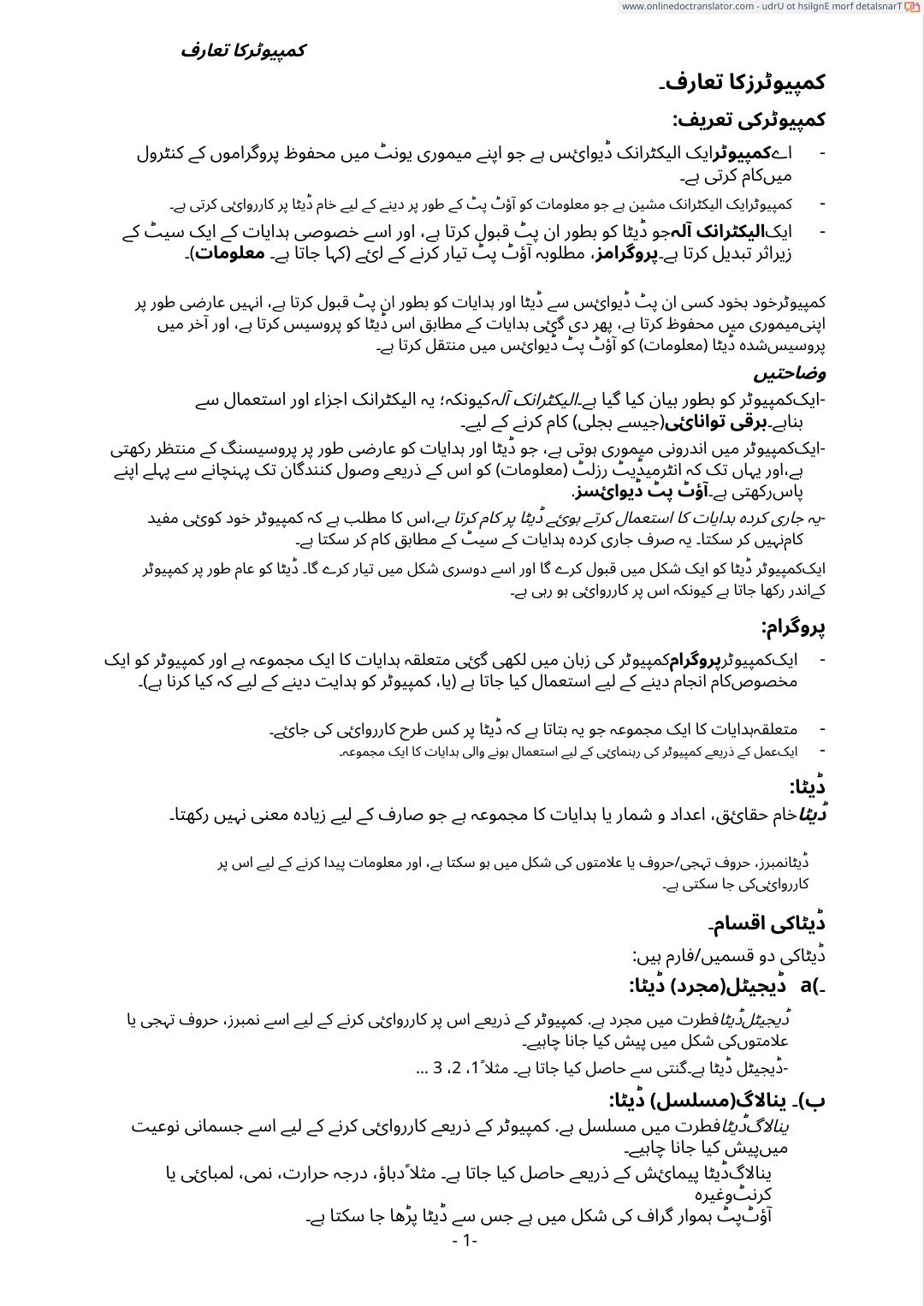[Audio] ﺮﭨﻮﯿﭙﻤﮐ ﺎﮐﻑﺭﺎﻌﺗ .8ﻞﺉﺎﭩﺳﺭﻭ: ﮏﯾﺍ ﺮﭨﻮﯿﭙﻤﮐ ﻮﮐ ﻒﻠﺘﺨﻣ ﮞﻮﮩﮕﺟ ﺮﭘ ﻒﻠﺘﺨﻣ ﮞﻮﻣﺎﮐ ﯽﮐ ﮏﯾﺍ ﯼﮍﺑ ﺩﺍﺪﻌﺗ ﻮﮐ ﻡﺎﺠﻧﺍ ﮯﻨﯾﺩ ﮯﮐ ﮯﯿﻟ ﻝﺎﻤﻌﺘﺳﺍ ﺎﯿﮐ ﺎﺟ ﺎﺘﮑﺳ ﮯﮨ ﺱﺍ ﺮﭘ ﺮﺼﺤﻨﻣ ﮯﮨ ﮧﮐ ﮯﺳﺍ ﯼﺩ ﯽﺉﮔ ﺕﺎﯾﺍﺪﮨ ﺮﭘ ﺮﺼﺤﻨﻣ۔ﮯﮨ .9 ﻡﺎﮐ ﮯﻧﺮﮐ ﮯﮐ ﮞﻮﻘﯾﺮﻃ ﺮﭘ ﮏﯾﺍ ﯽﻤﺳﺭ ﮧﻄﻘﻧ ﺮﻈﻧ ﺎﮐﺫﺎﻔﻧ: ﮧﮑﻧﻮﭼ ﮏﯾﺍ ﺮﭨﻮﯿﭙﻤﮐ ﻑﺮﺻ ﺕﺎﯾﺍﺪﮨ ﮯﮐ ﮏﯾﺍ ﺖﺨﺳ ﭧﯿﺳ ﮯﮐ ﮫﺗﺎﺳ ﻡﺎﮐ ﺮﮐ ﺎﺘﮑﺳ ،ﮯﮨ ﺱﺍ ﮯﯿﻟ ﮧﯾ ﺱﺍ ﺎﭩﯾﮈ ﮯﺳ ﮯﻨﭩﻤﻧ ﮯﮐ ﮯﯿﻟ ﺖﺨﺳ ﻦﯿﻧﺍﻮﻗ ﯽﮐ ﯽﮨﺪﻧﺎﺸﻧ ﺎﺗﺮﮐ ﮯﮨ ﺭﻭﺍ ﮯﺳﺍ ﺬﻓﺎﻧ ﺎﺗﺮﮐ ﮯﮨ ﮯﺴﺟ ﮯﺳﺍ ﺲﯿﺳﻭﺮﭘ ﮯﻧﺮﮐ ﮯﮐ ﮯﯿﻟ ﺎﯾﺩ ﺎﺗﺎﺟ۔ﮯﮨ ﺕﻻﺍﻮﺳ ﺎﮐ ﮦﺰﺉﺎﺟ۔ﮟﯿﻟ ۔1 ﺮﭨﻮﯿﭙﻤﮐ ﺎﯿﮐ؟ﮯﮨ .2 ﺮﭨﻮﯿﭙﻤﮐ ﻮﮐ ﮏﻧﺍﺮﭩﮑﯿﻟﺍ ﺲﺉﺍﻮﯾﮈ ﮞﻮﯿﮐ ﺎﮩﮐ ﺎﺗﺎﺟ؟ﮯﮨ .3 ﺮﭨﻮﯿﭙﻤﮐ ﺲﻨﺉﺎﺳ ﮟﯿﻣ ﻝﺎﻤﻌﺘﺳﺍ ﮯﻧﻮﮨ ﯽﻟﺍﻭ ﮧﺟﺭﺪﻨﻣ ﻞﯾﺫ ﺕﺎﺣﻼﻄﺻﺍ ﯽﮐ ﺖﺣﺎﺿﻭ۔ﮟﯾﺮﮐ a(۔ ﺏ(۔ ۔ c( ۔ d( .4 )ﺍ( )ﺏ( ﺎﭩﯾﮈ ﺭﻭﺍ ﺕﺎﻣﻮﻠﻌﻣ ﮯﮐ ﻥﺎﯿﻣﺭﺩ ﻦﯿﺗ ﻕﺮﻓ۔ﮟﯿﺉﺎﺘﺑ ۔5 ﺮﭨﻮﯿﭙﻤﮐ ﯽﮐ ﺭﺎﺘﻓﺭ ﻮﮐ___________ ﮟﯿﻣ ﺎﭘﺎﻣ ﺎﺗﺎﺟ۔ﮯﮨ ۔6 ﯽﮐ ﺡﻼﻄﺻﺍ ﺎﮐ ﺎﯿﮐ ﺐﻠﻄﻣ ؟ﮯﮨ GIGO ۔7 ﺮﭨﻮﯿﭙﻤﮐ ﯽﮐ 4 ﮞﺎﯾﺎﻤﻧﺕﺎﯿﺻﻮﺼﺧ/ ﺹﺍﻮﺧ ﯽﮐ ﺖﺳﺮﮩﻓ ﮟﯿﺉﺎﻨﺑ ﺭﻭﺍ ﺱﺍ ﯽﮐ ﺖﺣﺎﺿﻭ۔ﮟﯾﺮﮐ ۔8 ﯽﺘﺳﺩ ﻡﺎﻈﻧ ﺮﭘ ﮈﺰﺉﺍﺮﭨﻮﯿﭙﻤﮐ ﻢﭩﺴﺳ ﮯﮐ ﭻﻧﺎﭘ ﮮﺪﺉﺎﻓ ﺝﺭﺩ۔ﮟﯾﺮﮐ ۔ﺎﭩﯾﮈ ۔ﺰﻣﺍﺮﮔﻭﺮﭘ ﺎﭩﯾﮈ.ﮓﻨﺴﯿﺳﺍﺮﭘ .ﺕﺎﻣﻮﻠﻌﻣ ﺩﺍﺪﻋﺍ ﻭ ﺭﺎﻤﺷ ﯽﮐ ﻭﺩ ﮞﻮﻠﮑﺷ ﯽﮐ ﺮﺼﺘﺨﻣ ﺖﺣﺎﺿﻭ۔ﮟﯾﺮﮐ - 4.