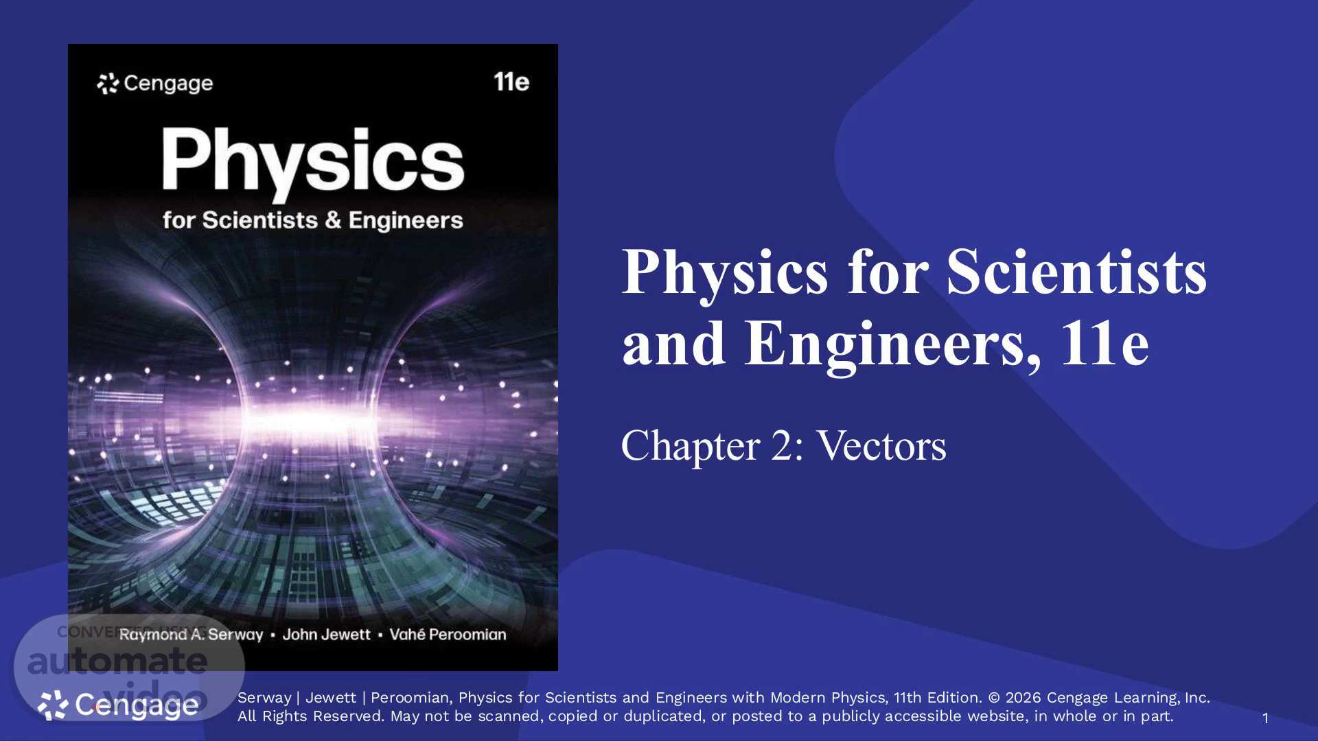 [Audio] Physics for Scientists and Engineers, 11e Chapter 2: Vectors Serway | Jewett | Peroomian, Physics for Scientists and Engineers with Modern Physics, 11th Edition. © 2026 Cengage Learning, Inc. All Rights Reserved. May not be scanned, copied or duplicated, or posted to a publicly accessible website, in whole or in part. Serway | Jewett | Peroomian, Physics for Scientists and Engineers with Modern Physics, 11th Edition. © 2026 Cengage Learning, Inc. All Rights Reserved. May not be scanned, copied or duplicated, or posted to a publicly accessible website, in whole or in part. 1.