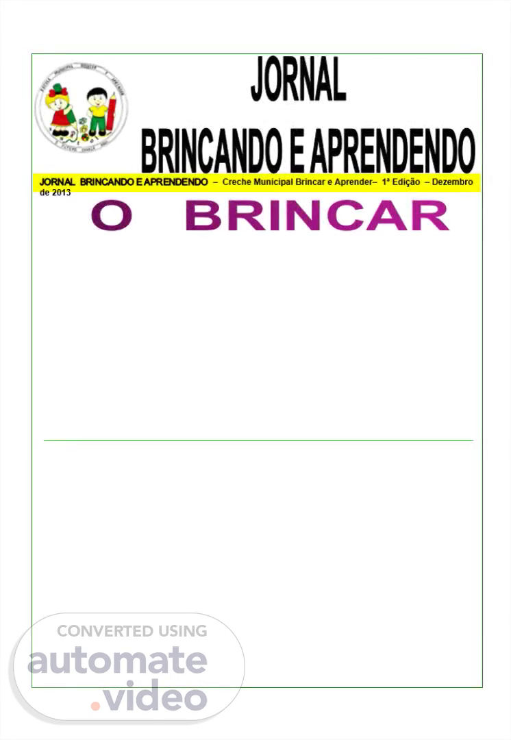 JORNAL BRINCANDO E APRENDENDO O BRINCAR JORNAL BRINCANDO E APRENDENDO – Creche Municipal Brincar e Aprender– 1 ª Edição – Dezembro de 2013.