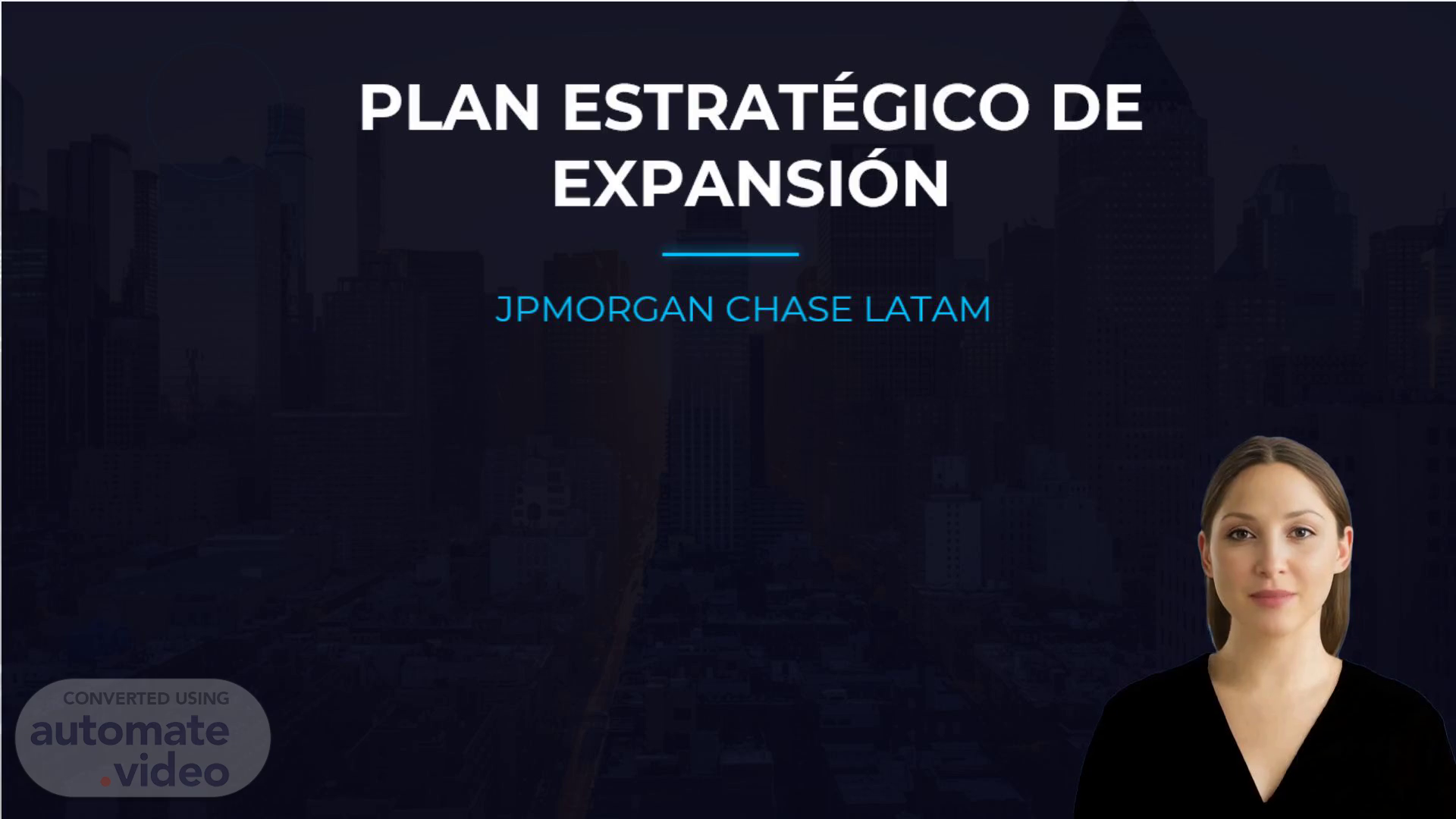 [Virtual Presenter] ¡Bienvenidos a la presentación del plan estratégico del 2025-2027 de JPMorgan Chase para América Latina! En esta primera diapositiva, vamos a hablar sobre los enfoques clave de crecimiento, cumplimiento, talento y expansión en los sectores de Banca al Consumidor e Inversión en Latinoamérica. ¡Empecemos!.
