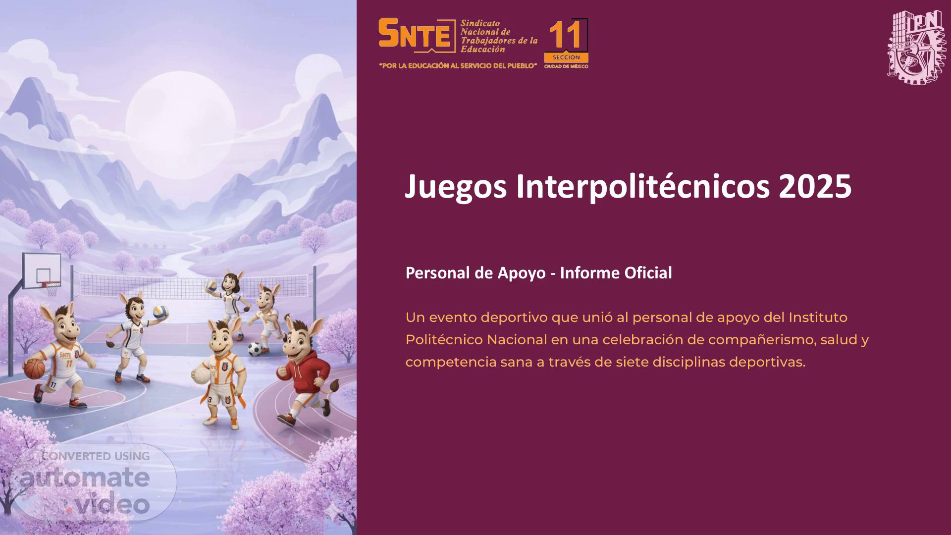 [Audio] Juegos Interpolitécnicos 2025 Personal de Apoyo - Informe Oficial Un evento deportivo que unió al personal de apoyo del Instituto Politécnico Nacional en una celebración de compañerismo, salud y competencia sana a través de siete disciplinas deportivas..