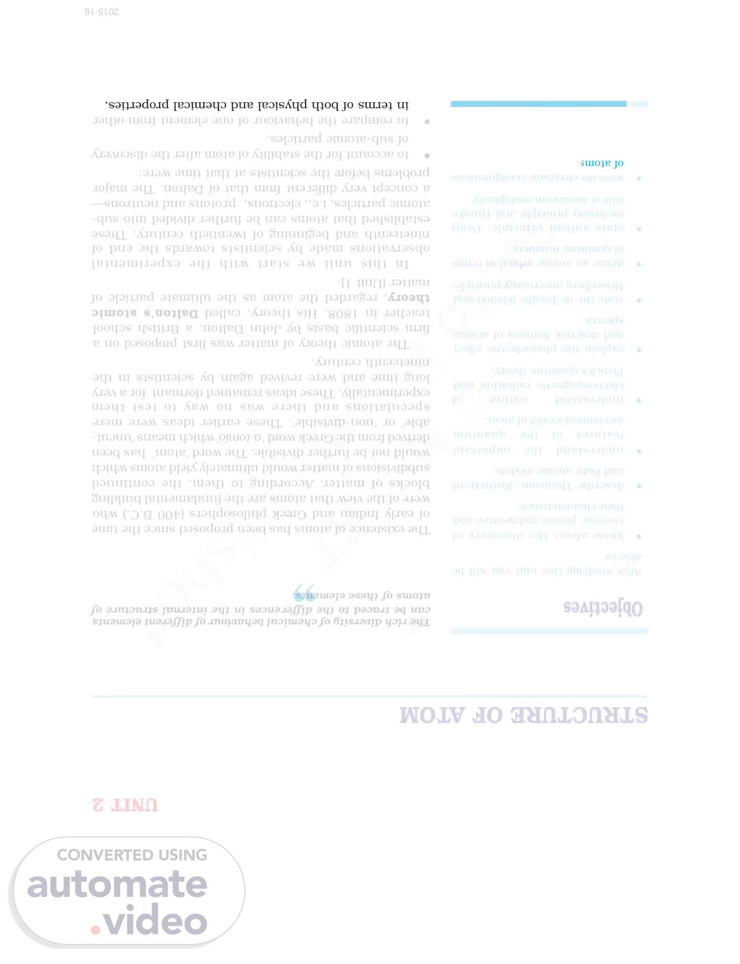 26 CHEMISTRY. The rich diversity of chemical behaviour of different elements can be traced to the differences in the internal structure of atoms of these elements..