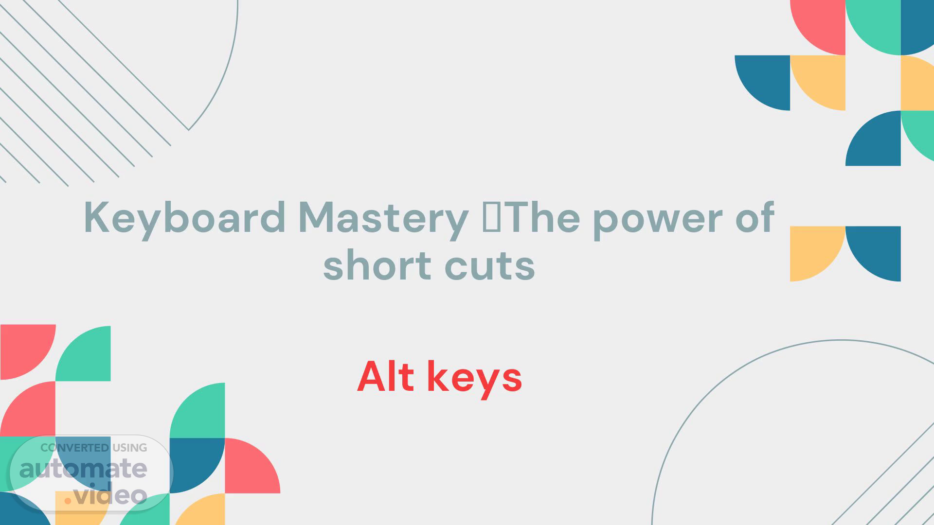 [Audio] Keyboard Mastery �The power of short cuts Alt keys.