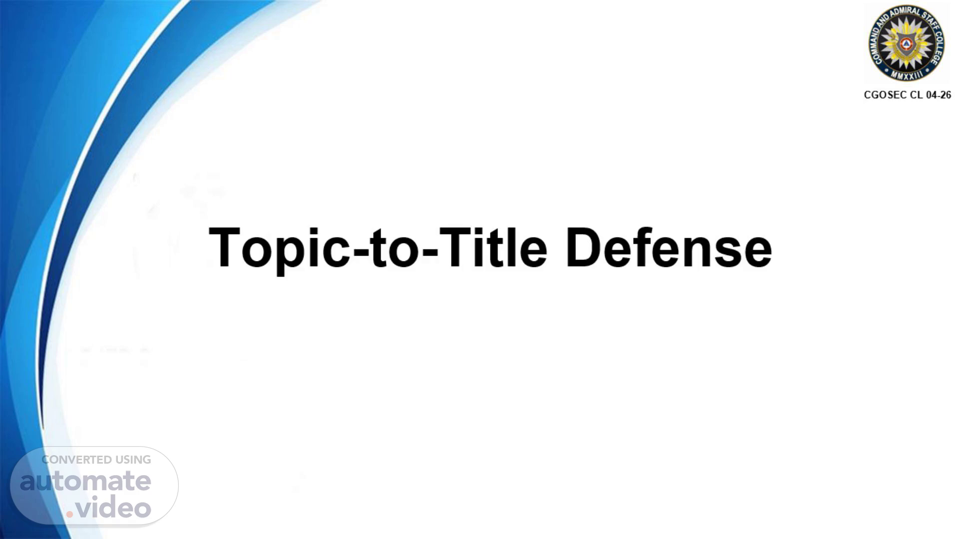 [Audio] For my chosen adviser, I have here Captain Michell V Ursabia who is the current CO of the Coast Guard Dental Station Palawan. He had previous notable designations such as CO, CG Dental Station SM and General Services Office, O/CPCG. His field of specialization is oromaxillo facial surgery and he already completed his Master in Public Management degree, majoring in Development and Security, with specialization in maritime Safety and Security. That would be all for my first proposed topic and title. I will now proceed to my second Concept Paper..