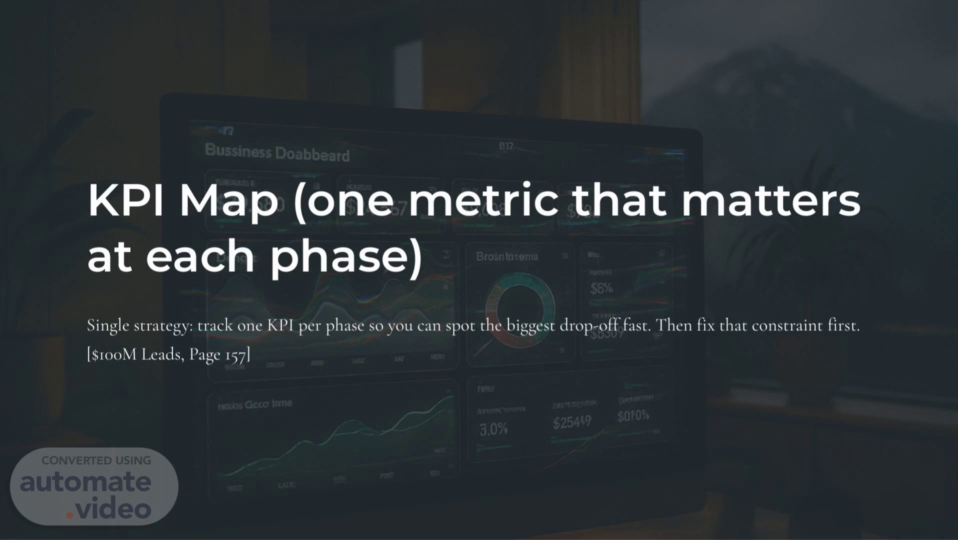 [Audio] KPI Map (one metric that matters at each phase) Single strategy: track one KPI per phase so you can spot the biggest drop-off fast. Then fix that constraint first. [$100M Leads, Page 157].