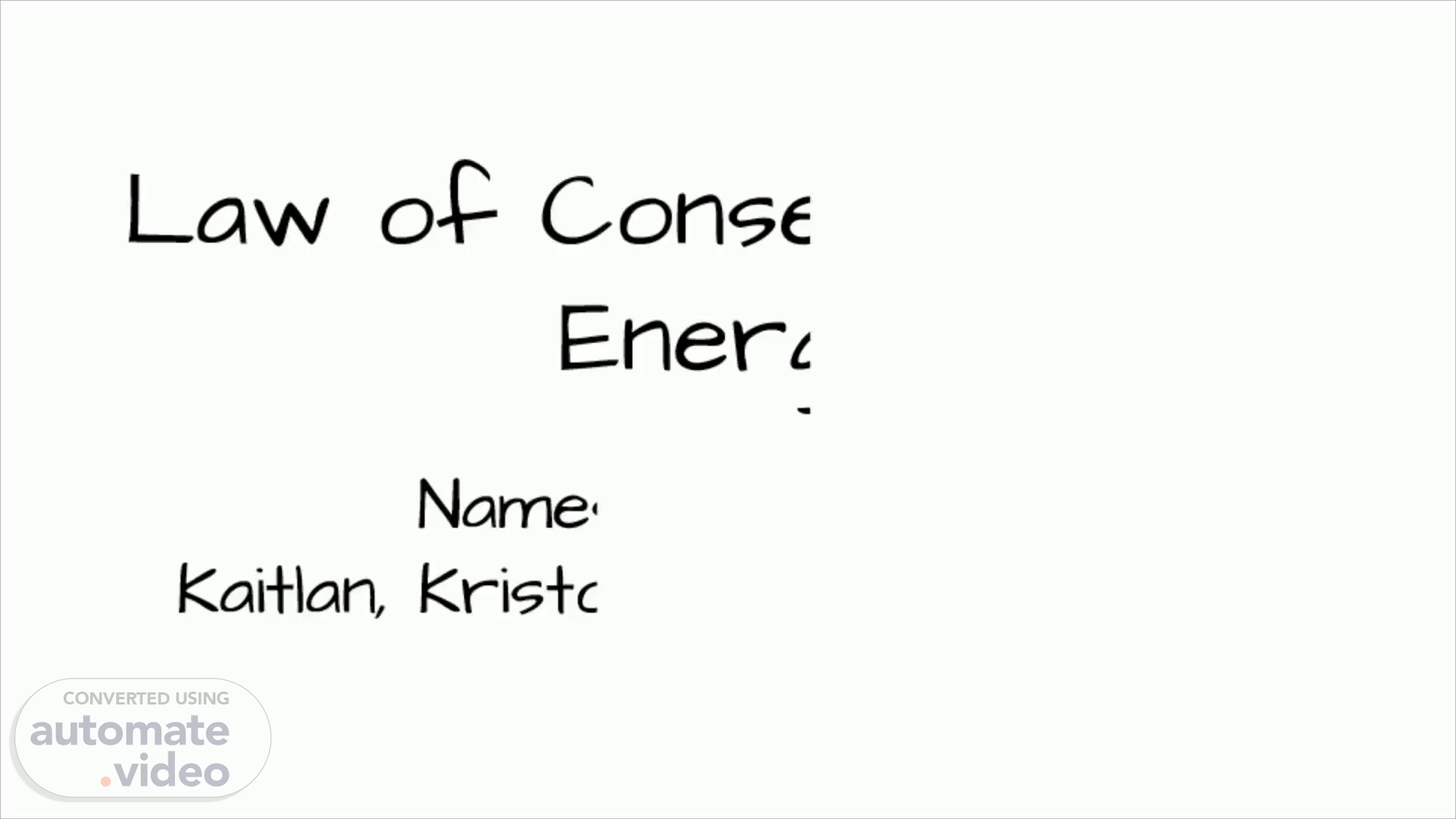 Law of Conservation of Energy. Names of students Kaitlan, Kristopher, Jackson, Emma.