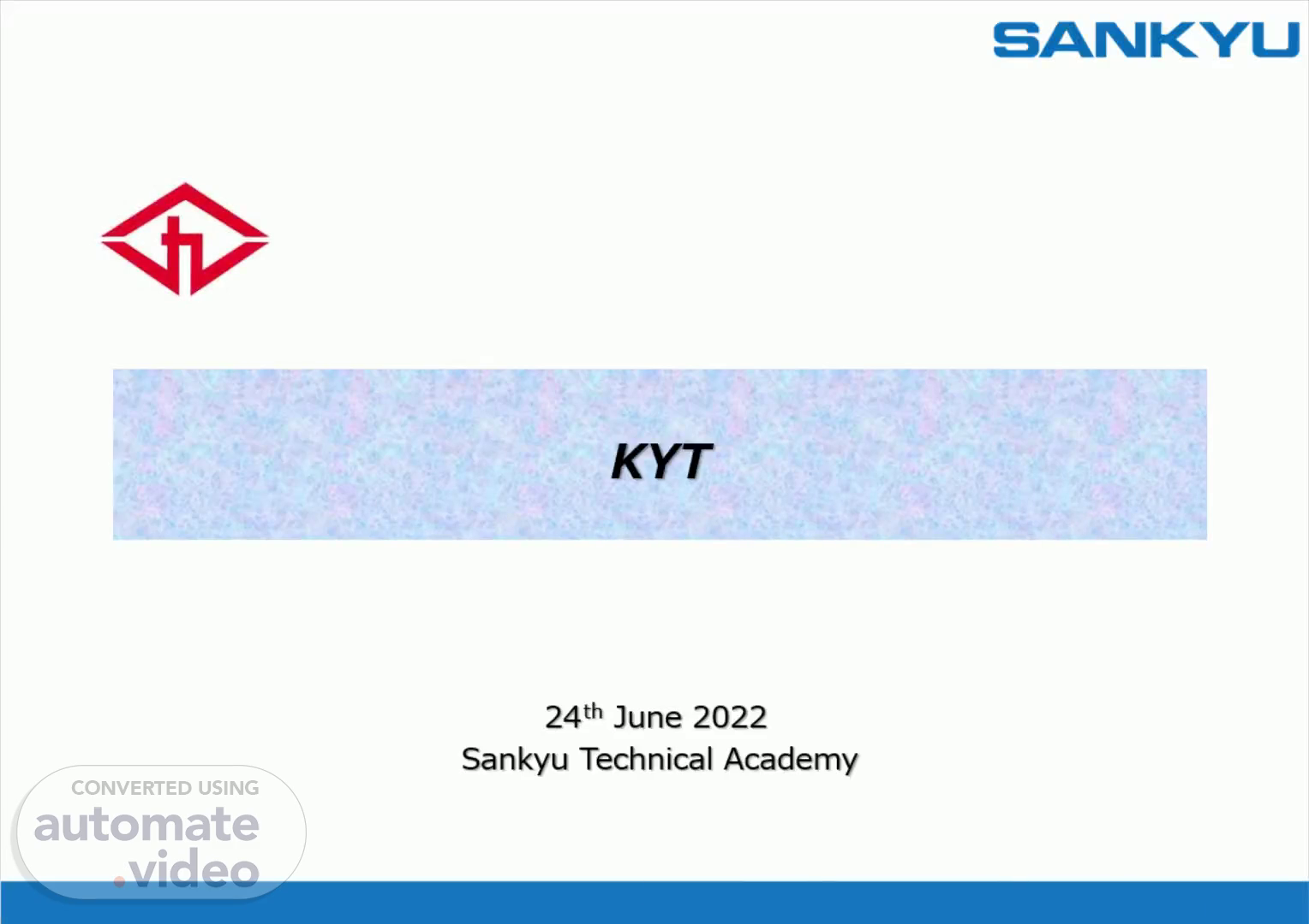 3. OUTLINE OF KYT. KYT involves the following operations: Model sheets describing the job site situation and operations are used, or work is performed using actual work pieces at job sites or shown how to operate. Hazard factors (unsafe actions or situations that could cause accidents or injuries to workers) lurking at job sites or in operational procedures, and the phenomena (accident patterns) which such hazard factors bring about. Are discussed, considered and comprehended by small groups at job sites (or through soliloquy by individuals). Hazard points and action goals are determined and confirmed through “point and repeat” or items for “point and call” are confirmed. Pre-emptive actions are taken prior to conducting activities to ensure safety and health..