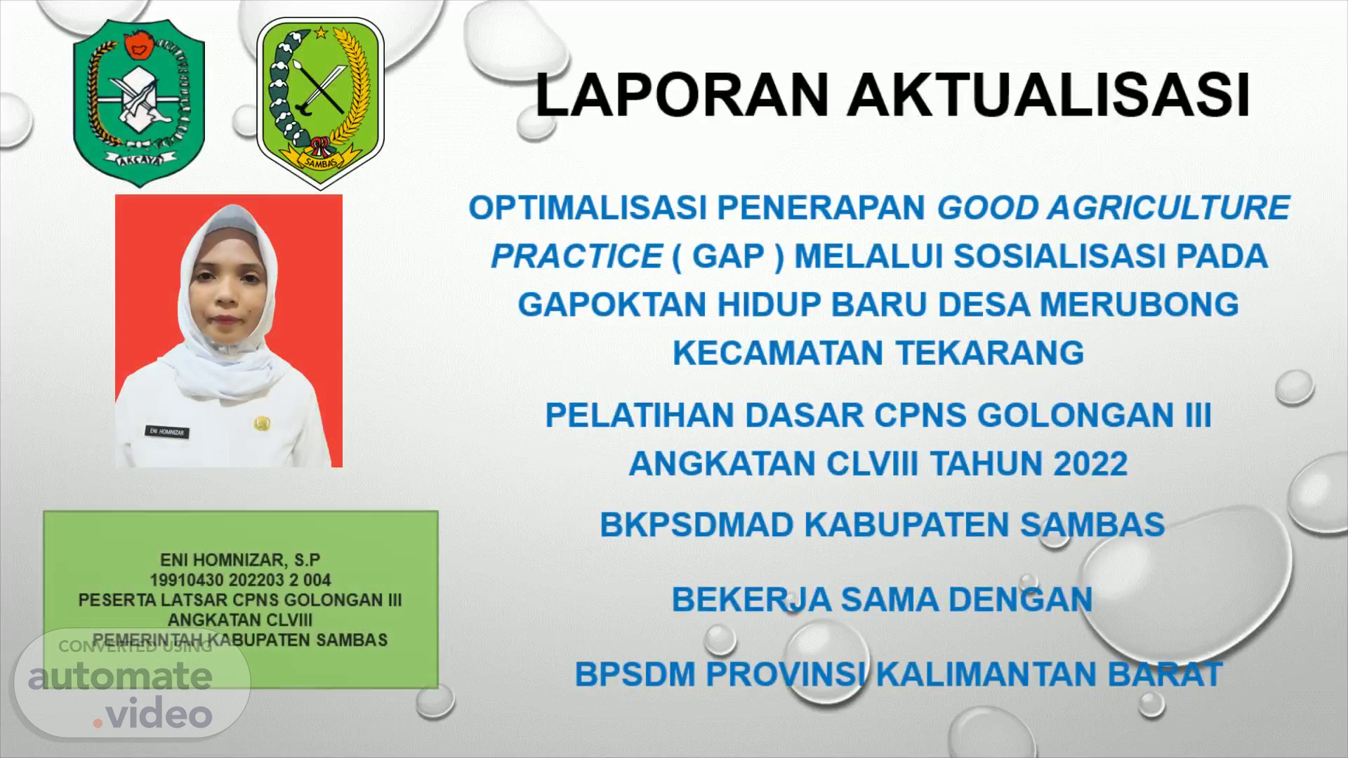 Laporan aktualisasi. Optimalisasi penerapan good agriculture practice ( gap ) melalui sosialisasi pada gapoktan hidup baru desa merubong kecamatan tekarang Pelatihan dasar cpns golongan iii angkatan clviii tahun 2022 BKPSDMAD KABUPATEN SAMBAS BEKERJA SAMA DENGAN BPSDM PROVINSI KALIMANTAN BARAT.