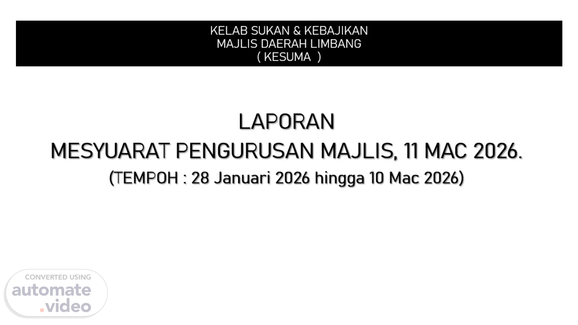 [Audio] Kelab Sukan & Kebajikan Majlis Daerah Limbang ( Kesuma ) Laporan Mesyuarat Pengurusan Majlis, 11 Mac 2026. (tempoh : 28 Januari 2026 Hingga 10 Mac 2026).