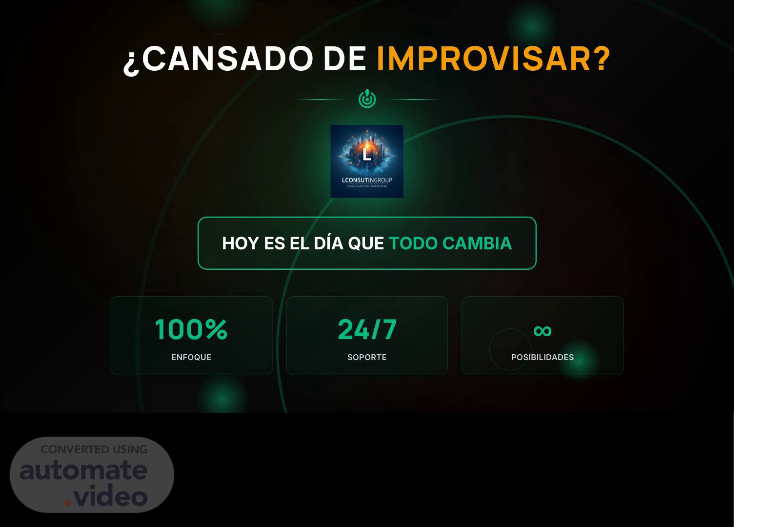 ¿CANSADO DE IMPROVISAR? HOY ES EL DÍA QUE TODO CAMBIA 100% ENFOQUE 24/7 SOPORTE ∞ POSIBILIDADES.