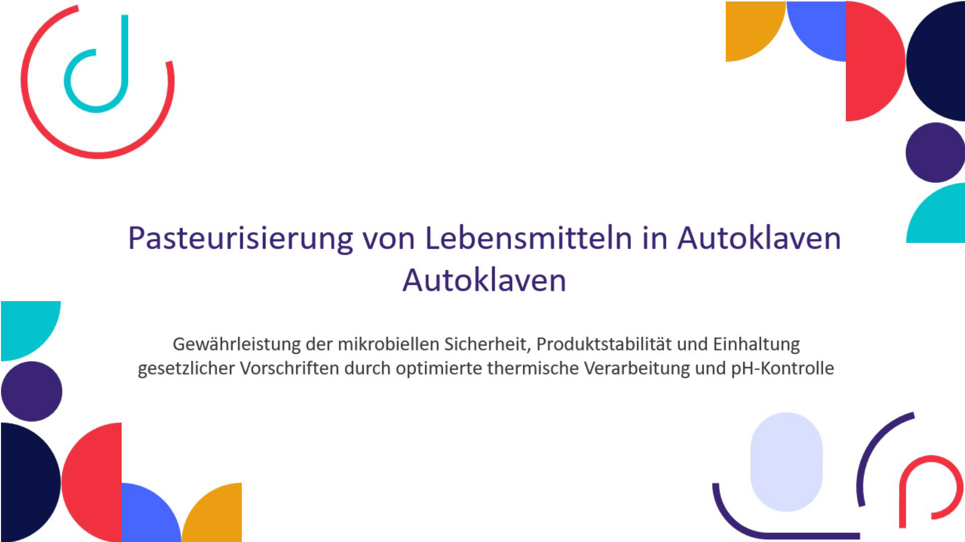 [Audio] In diesem Vortrag konzentrieren wir uns auf die mikrobiologische Risikobewertung bei der Pasteurisierung im Autoklaven. Zunächst identifizieren wir die Zielmikroorganismen, zu denen infektiöse Krankheitserreger wie Salmonellen und Listerien, Toxinproduzenten wie Clostridium botulinum und Staphylococcus aureus sowie Verderbnissporen wie Bacillus coagulans und Clostridium pasteurianum gehören. Anschließend führen wir eine Risikobewertung durch, um Worst-Case-Kontaminationsszenarien zu identifizieren. Dieser Schritt ist entscheidend für die Festlegung kritischer Grenzwerte für die Wärmebehandlung und den pH-Wert und stellt sicher, dass der Pasteurisierungsprozess mikrobiologische Risiken wirksam kontrolliert. Ein wichtiger Kontrollpunkt ist die Aufrechterhaltung des maximalen Gleichgewichts-pH-Werts unter 4,6 innerhalb von 24 Stunden, was unerlässlich ist, um das Wachstum von Clostridium botulinum zu verhindern. Dieser pH-Grenzwert ist ein kritischer Faktor für die Sicherheit des Produkts. In Bezug auf die Wärmebehandlung verlangen die Normen, dass eine Reduktion von infektiösen Krankheitserregern um mindestens 6 log erreicht wird. Dies kann beispielsweise durch eine Wärmebehandlung von 2 Minuten bei 70 °C erreicht werden. Die Einhaltung dieser Standards ist für die Gewährleistung der mikrobiologischen Sicherheit des Produkts von entscheidender Bedeutung. Schließlich integriert das Prozessdesign diese mikrobiologischen Risiken, indem es Wärmebehandlung und Maßnahmen zur pH-Kontrolle kombiniert. Dieser integrierte Ansatz garantiert die Produktsicherheit während seiner gesamten Haltbarkeit, indem er potenziellen Kontaminationsrisiken effektiv begegnet..