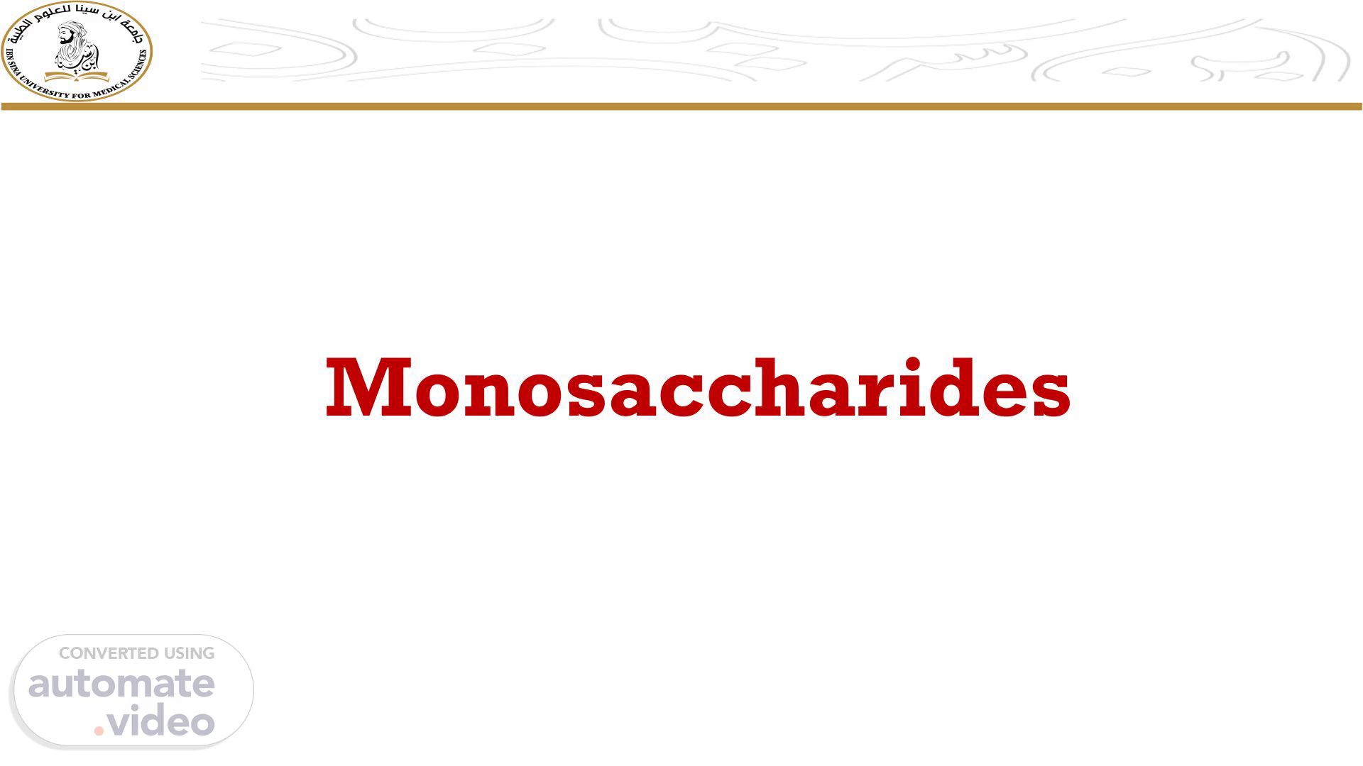 ➢ By the end of the lecture, the students should be able to: • Define Carbohydrates • Classify carbohydrates • Identify the different types and structure of monosaccharides • Understand biological importance of monosaccharides • Correlate to clinical conditions Course learning outcomes.