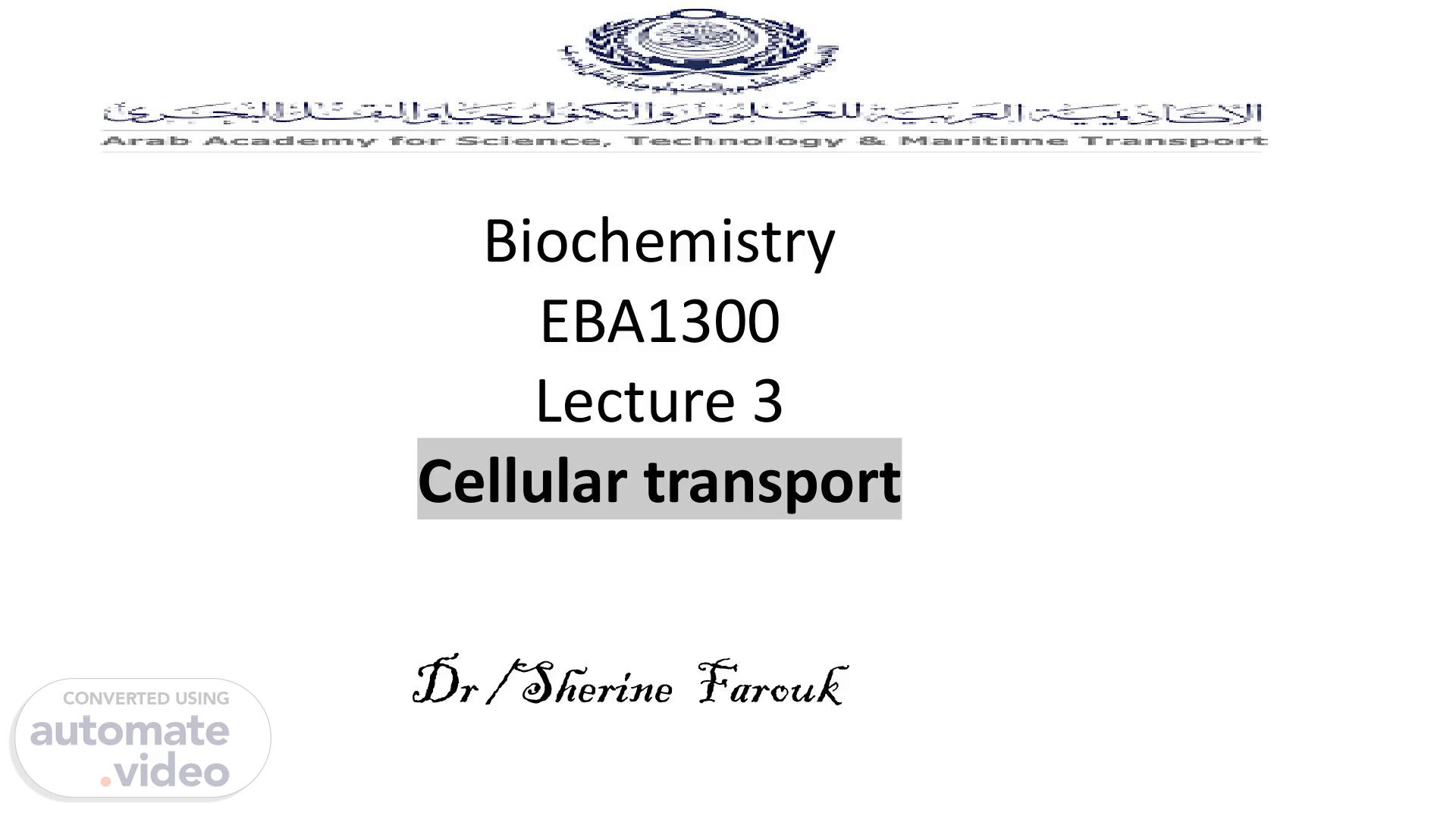[Audio] Biochemistry EBA1300 Lecture 3 Cellular transport Dr /Sherine Farouk.