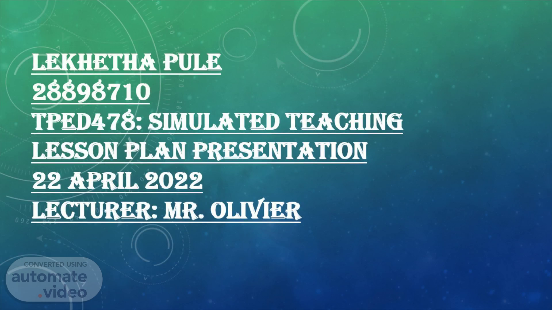 LEKHETHA PULE 28898710 TPED478: simulated teaching lesson plan presentation 22 April 2022 lecturer: Mr. OLIVIER.