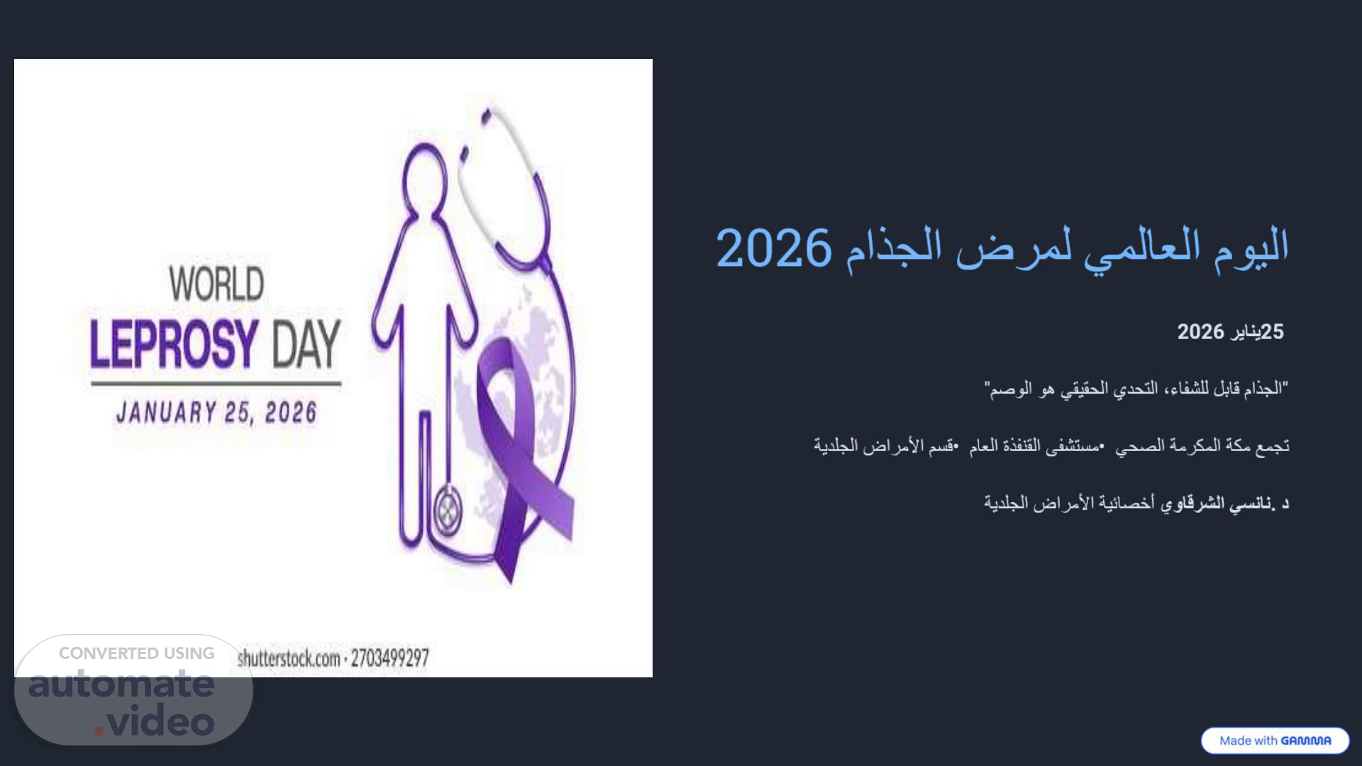اليوم العالمي لمرض الجذام 2026. 25 يناير 2026. "الجذام قابل للشفاء، التحدي الحقيقي هو الوصم".