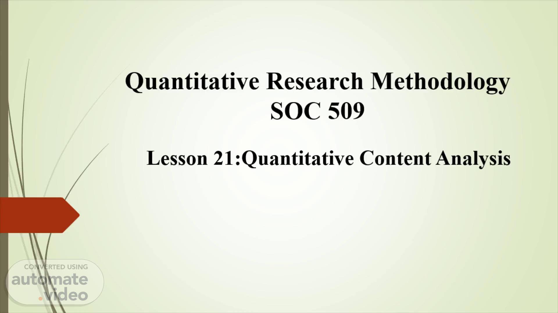 Quantitative Research Methodology SOC 509. Lesson 21: Quantitative Content Analysis.