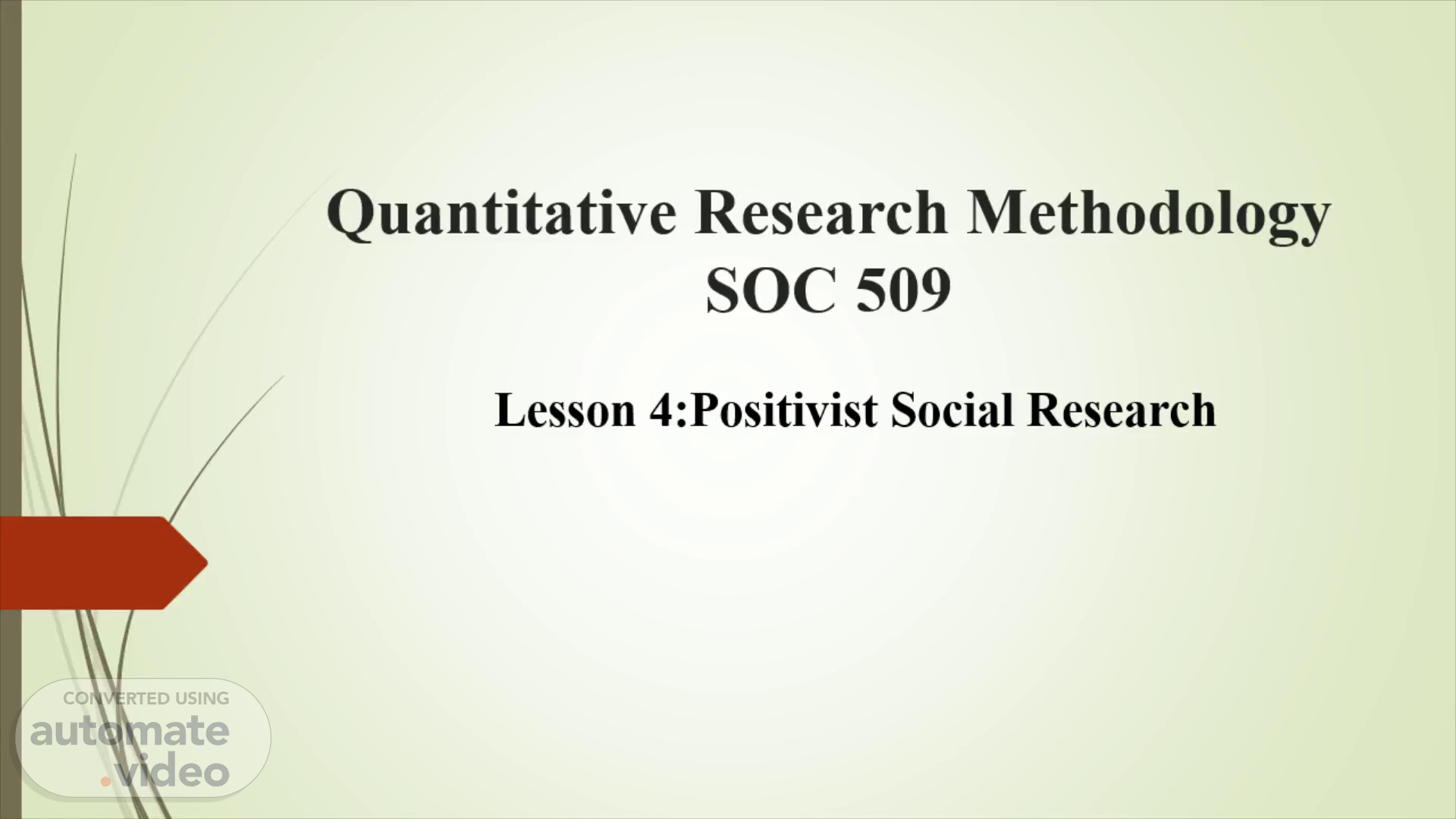 Quantitative Research Methodology SOC 509. Lesson 4: Positivist Social Research.