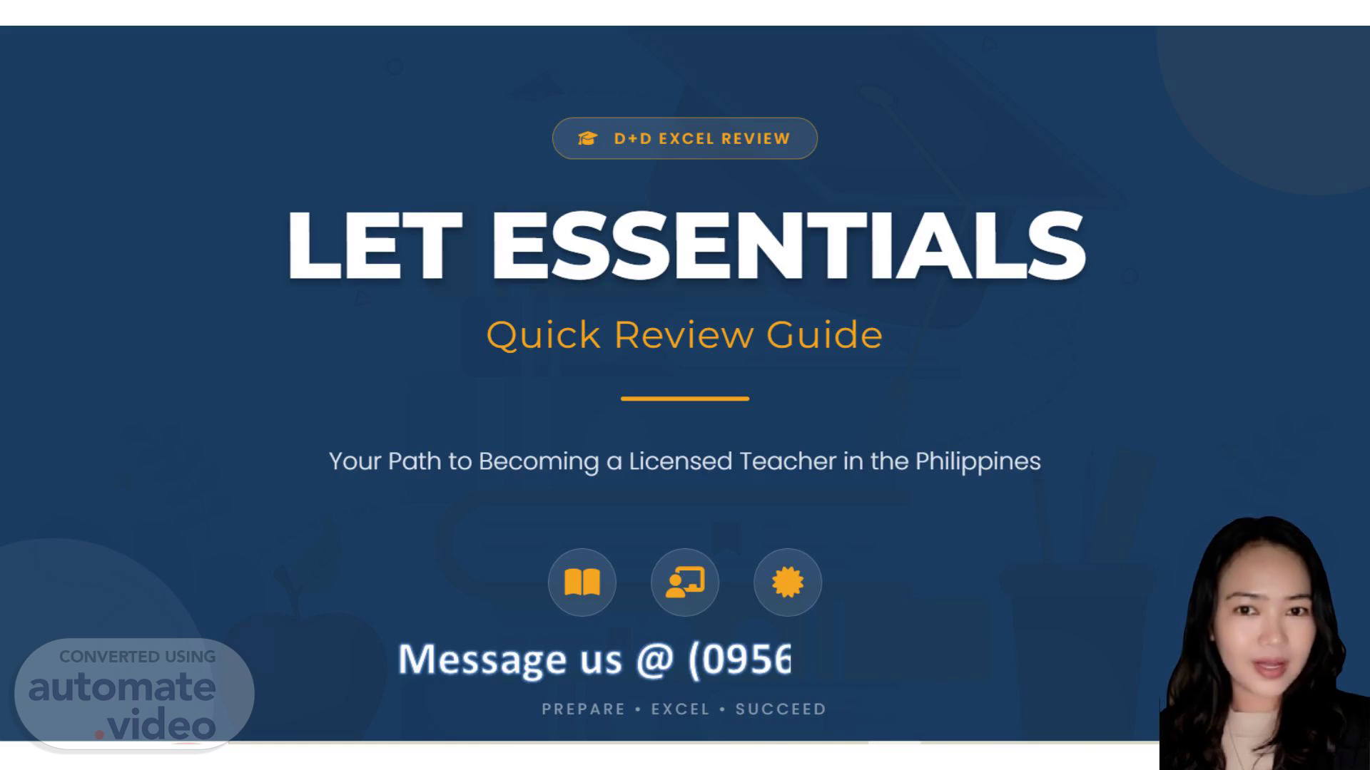 "Welcome to L-E-T Essentials: Your Quick Review Guide. We are D plus D Excel Review, and we are here to help you navigate your path to becoming a licensed professional teacher in the Philippines.".