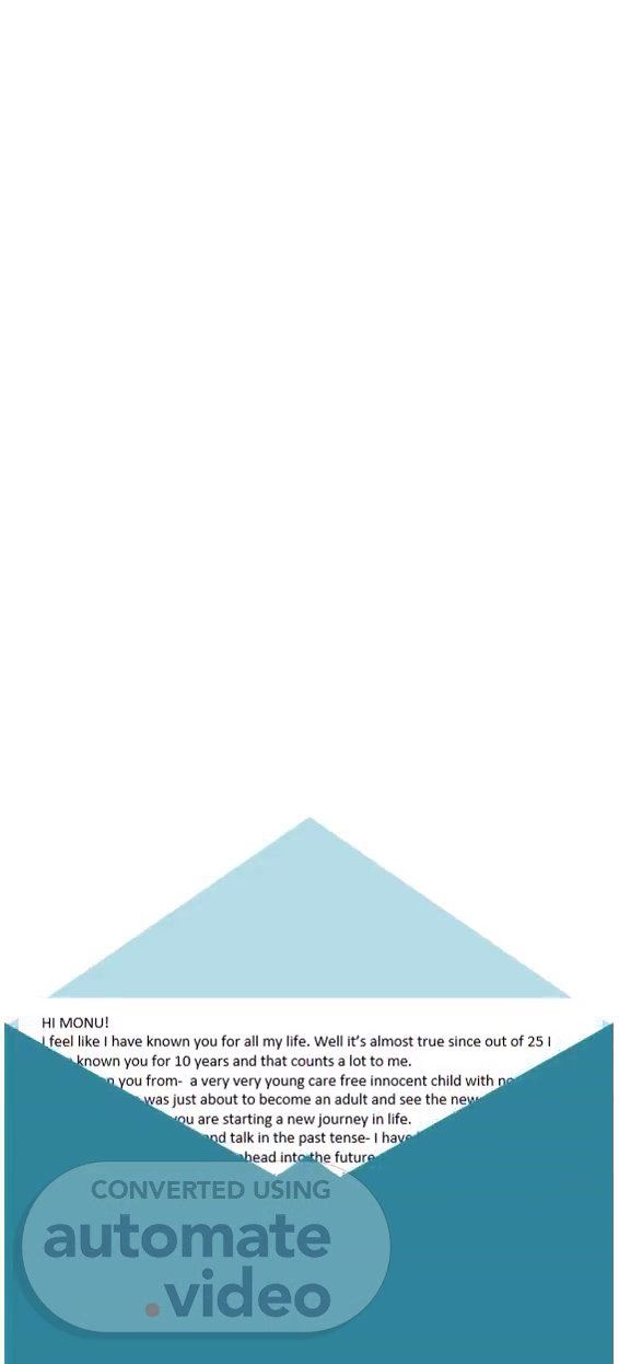 HI MONU! I feel like I have known you for all my life. Well it’s almost true since out of 25 I have known you for 10 years and that counts a lot to me. I have seen you from- a very very young care free innocent child with no care of the world, who was just about to become an adult and see the new world – to today; where again you are starting a new journey in life. I do not want to go back and talk in the past tense- I have learnt recently that it’s in the best interest of all to look ahead into the future and focus on present. And so I want to convey a few things about you today- in the present. Today- Monish - you have become a person I am sincerely very proud of. I am extremely proud of the way that you are moving ahead in Life with utmost dedication towards making yourself a better person and dealing with your life like an adult. I am no one to judge you how good or bad you are doing- no one is actually- but I am extremely proud of the fact that you are doing this all by yourself. I know for sure you might be facing many many obstacles that no one around you might even be aware of, but you are there for yourself and there is not a better thing than this- trust me! You have always had, and still have the best wisdom of looking at a person and seeing deep into his heart! (This ability- I am trying- but still haven’t developed.) But you are so good at it. And it is something that is going to help you settle in the new city and navigate through the people around you. Never lose this amazing quality that you have in you. You are a working professional now, with great ambitions for your future and even bigger dreams – and I admire the fact that you stick by them and see them getting fulfilled! Work hard towards them- you are a very hard working person – and before you will realise you will see them coming true in front of your eyes. Believe in yourself! Be smart and be yourself! Your one of the best qualities is that you are hardly ever afraid of anyone in this world. And it’s just the right attitude when you are out in the tough world! Never do wrong with any one- and never be afraid of speaking up – when you are wronged! Fight for yourself as you always have and stay with the truth! I have immense confidence in you as you are a pure person by heart. This brings me to the last of the points I am here to convey- You are a gem of a person by heart. Seeing you for many many years has shown me the true side of you- that inside you is a very soft heart filled with compassion for others, for the needy, for anybody who is looking for it- and no matter how tough you have to be on the outside, always be the way you are, from the inside. Not everyone has the ability to have both things at the same time and you carry it well inside you. Be a great human being like you have always been. Go out there and kill the world with your charm, intelligence, compassion and your true self. You will always have your people by your side- whenever you need! I wish you all the very best in the world and tons and tons of good luck for the new adventure you are on towards now! With lots of love and support, AAROHI!.