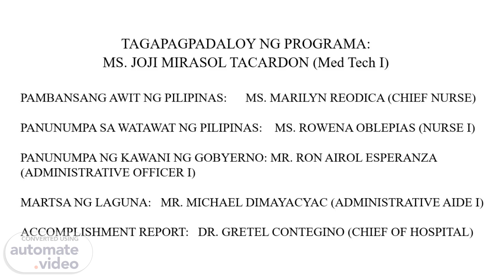 TAGAPAGPADALOY NG PROGRAMA: MS. JOJI MIRASOL TACARDON (Med Tech I)