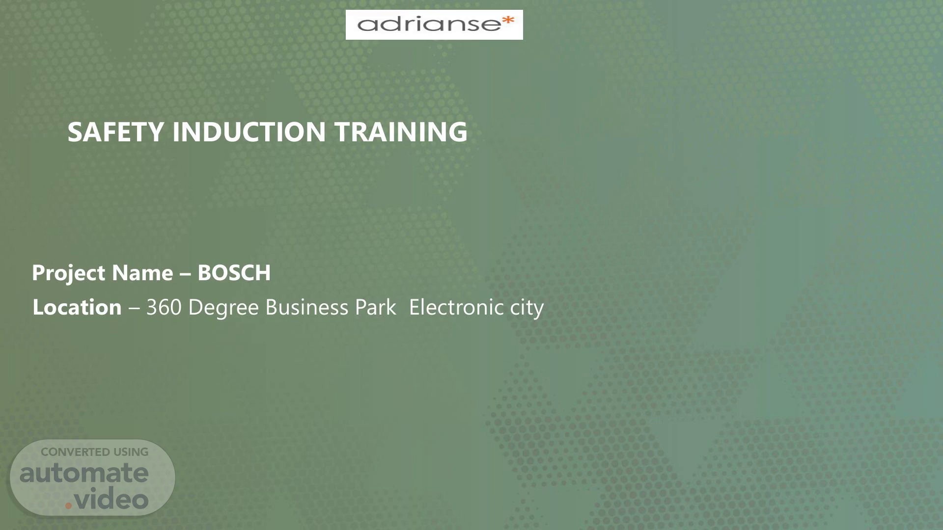[Audio] Good morning everyone. Today we present our findings on the safety induction training we conducted for our employees. We analyzed the current state of safety at the 360 Degree Business Park in Electronic city and identified areas for improvement. Our team worked closely with bosch to ensure the training was delivered in an effective and engaging way for our employees. The training covered a range of topics, including emergency procedures, personal protective equipment, and hazard identification. Our employees have been receptive to the training and are now more equipped to handle any safety concerns that may arise. We believe that this training will help to create a safer and more productive work environment for our employees and for the wider community. Thank you for your attention..