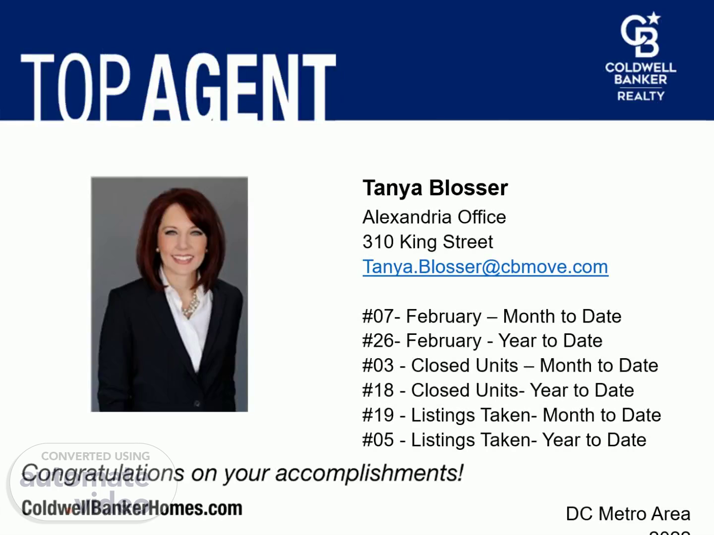 Alexandria Office 310 King Street [email protected] #07- February – Month to Date #26- February - Year to Date #03 - Closed Units – Month to Date #18 - Closed Units- Year to Date #19 - Listings Taken- Month to Date #05 - Listings Taken- Year to Date DC Metro Area 2022.
