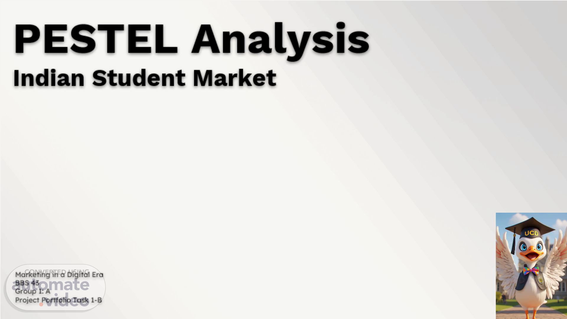 PESTEL Analysis Indian Student Market. [image]. Saghilan | Mayukh | Oliver | Rui Qi.