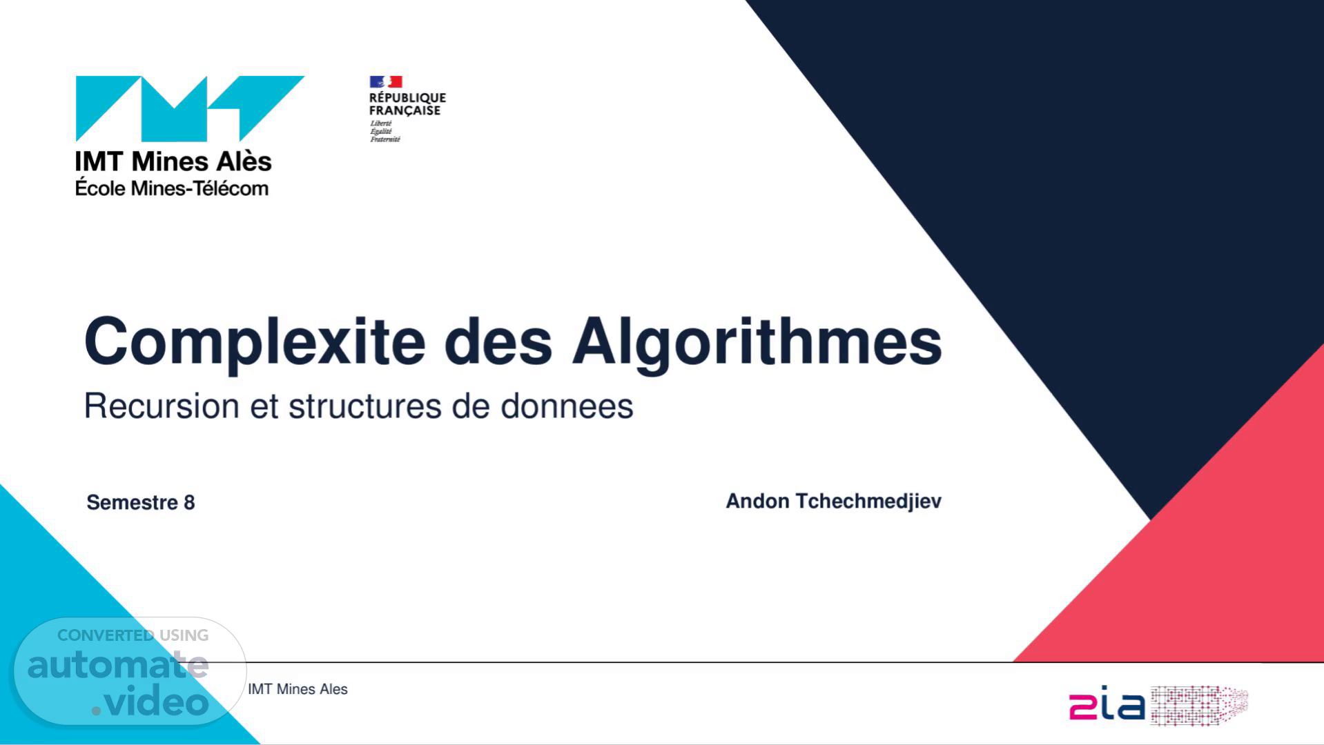 Complexite des Algorithmes Recursion et structures de donnees Semestre 8 Andon Tchechmedjiev IMT Mines Ales.