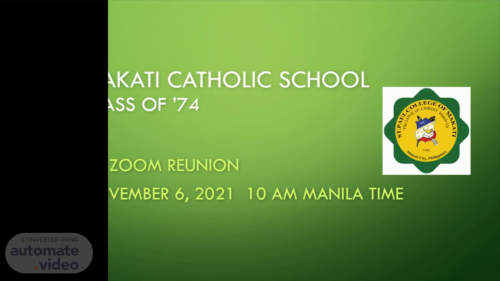 Makati Catholic School Class of ’74. 1 st Zoom Reunion November 6, 2021 10 am Manila time.