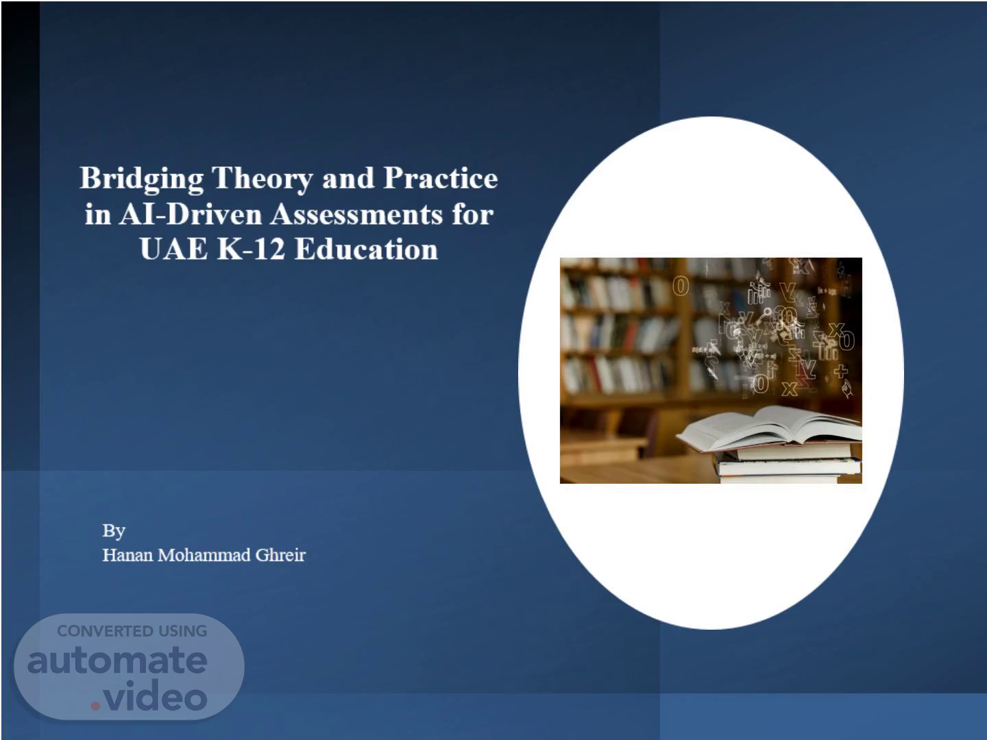 [Audio] Problem Statement Despite the UAE’s strategic push to integrate Artificial Intelligence (AI) into its education system, particularly in assessments, there remains a significant gap between the potential of AI technologies and their practical implementation in classrooms. While AI offers promising solutions for personalized learning and improved evaluation, educators face challenges related to ethical concerns, data privacy, infrastructure limitations, and a lack of professional training. Furthermore, there is limited research on how AI is currently being used in assessment practices within UAE public and private schools..