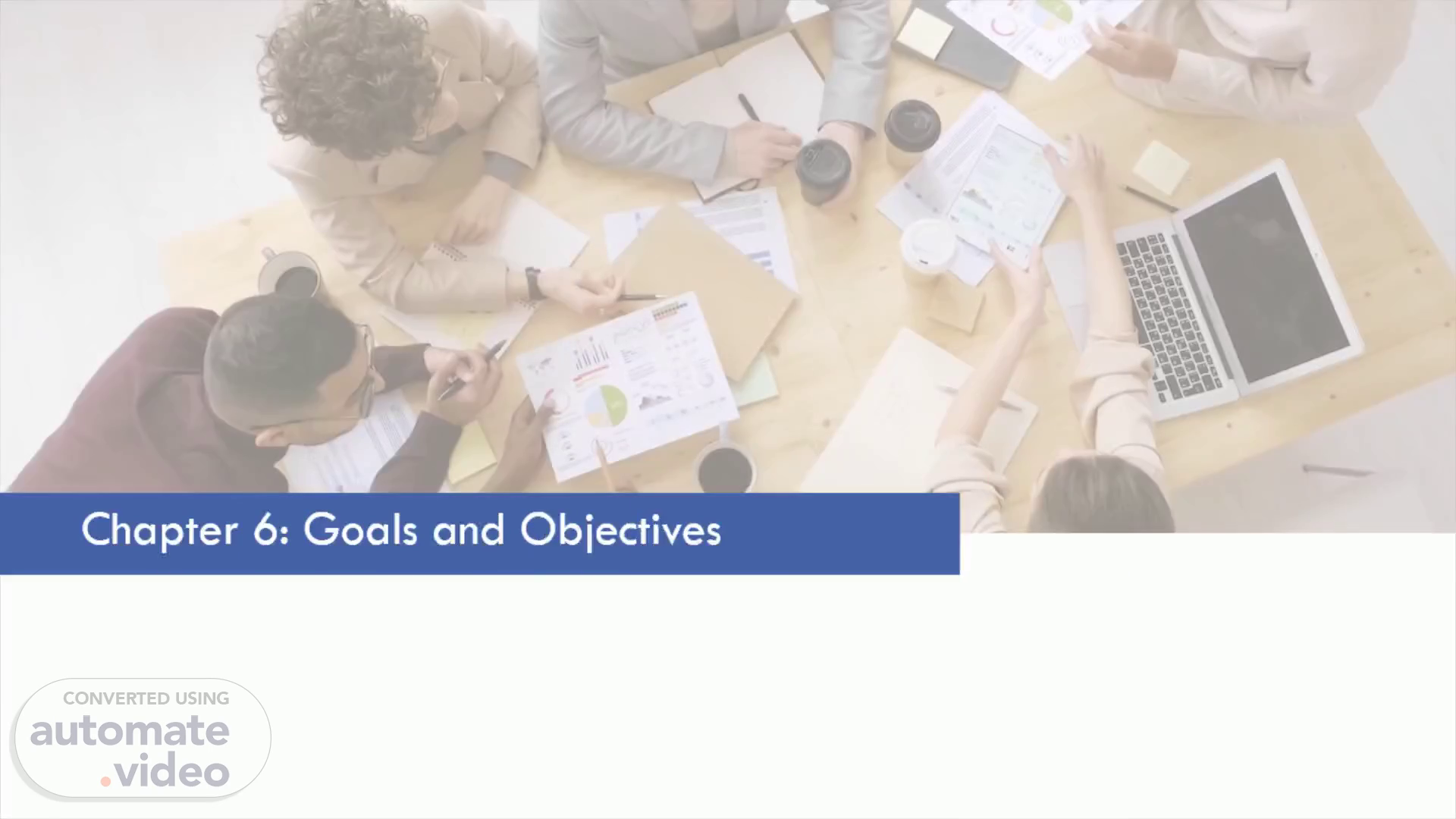 Chapter 6: Goals and Objectives. A group of people sitting around a table looking at papers Description automatically generated with low confidence.