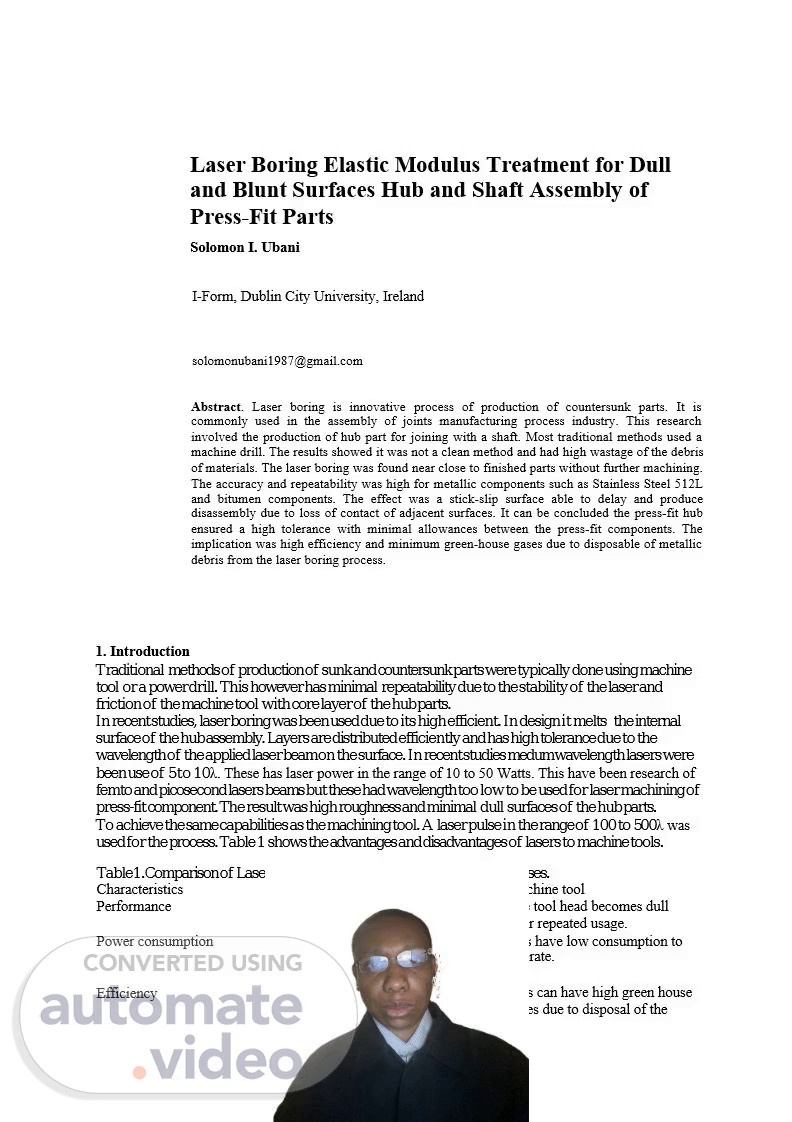 Laser Boring Elastic Modulus Treatment for Dull and Blunt Surfaces Hub and Shaft Assembly of Press-Fit Parts.