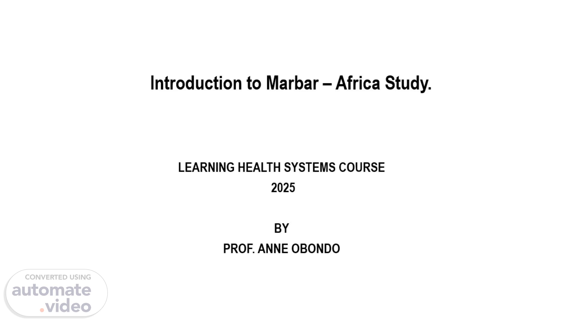 [Audio] Good morning, everyone! I am Prof. Anne Obondo, an associate professor in the Department of Psychiatry, UoN, and a practicing psychiatric social worker in the same Department. I would like to take this opportunity to welcome you all to this learning health systems course organized by Marbar Africa study team, and to thank you for accepting to be part of this study. We look forward to a beneficial and interactive engagement and learning from each other in this process. Best wishes.