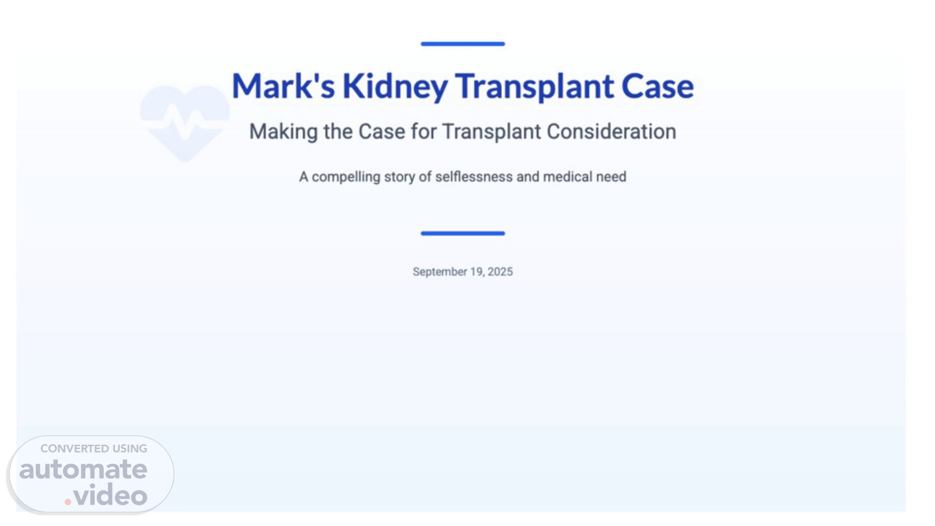 [image] Mark's Kidney Transplant Case Making the Case for Transplant Consideration A compelling story Of selflessness and medical need September 19, 2025.