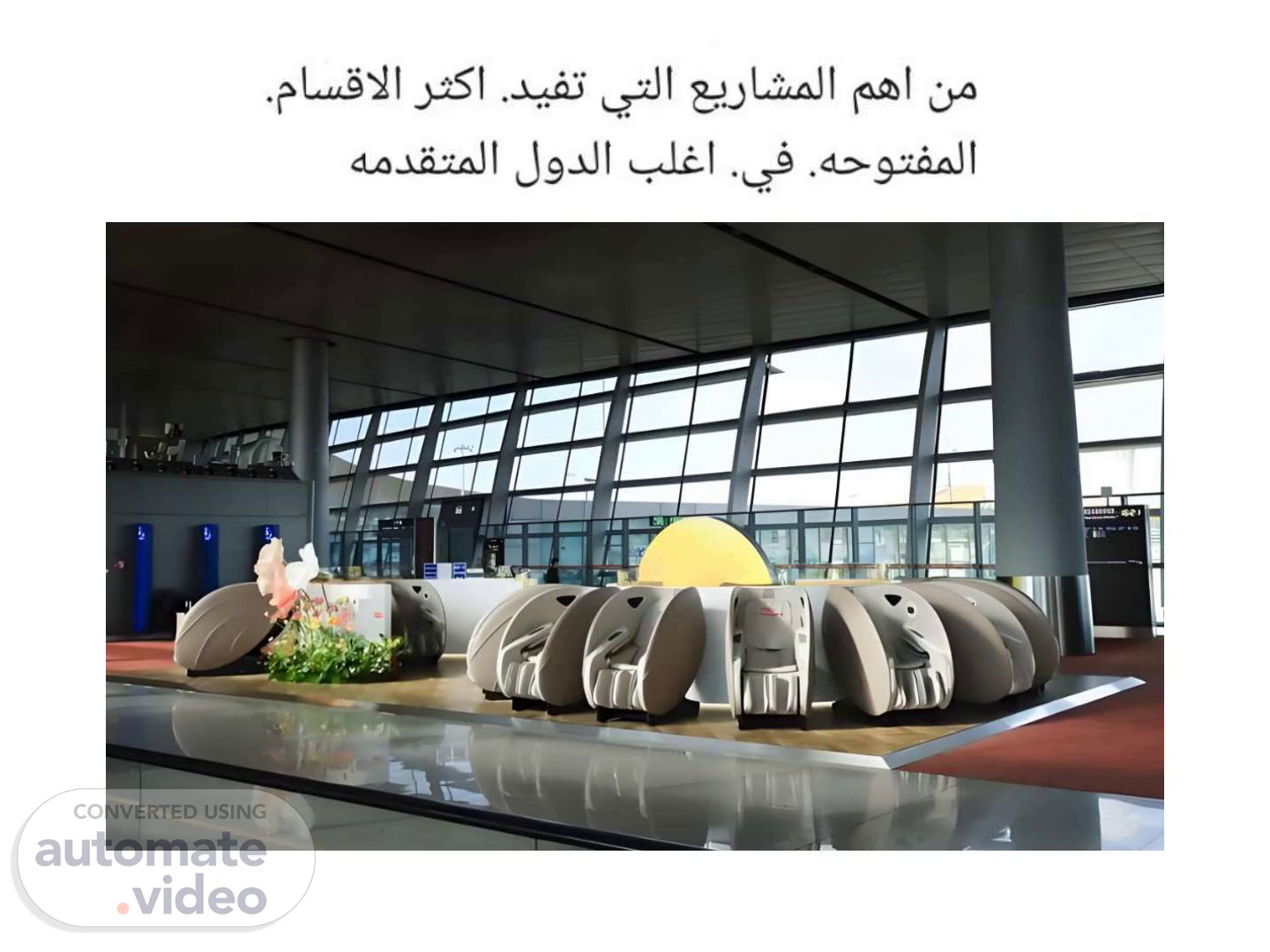 [Audio] في هذه الشريحة سنتحدث عن الفرص الاستثمارية في سوق كراسي التدليك. تجربة تطورات شهدتها الصناعة في السنوات الأخيرة. كراسي التدليك تتمتع بمستقبل واعد وتزايد الطلب عليها. سوق جذاب للاستثمار ومشجع. نلتقي في الشريحة التالية..