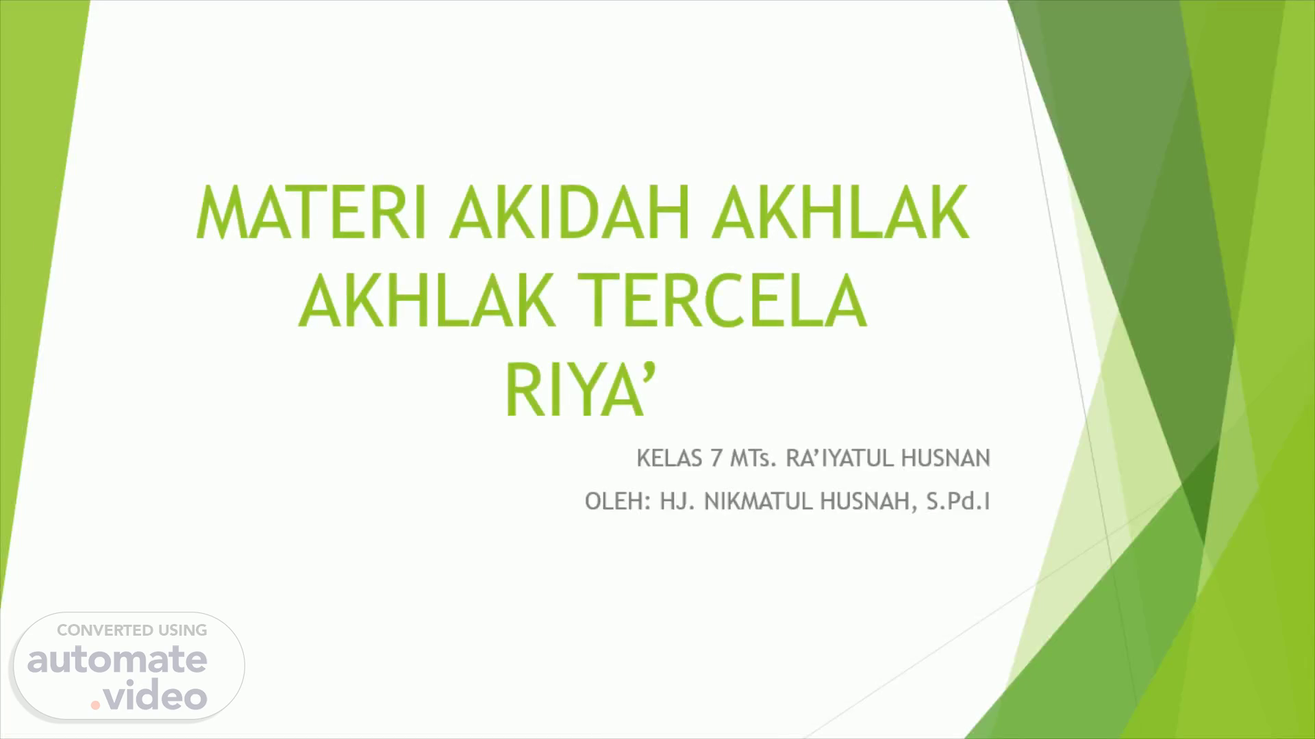 MATERI AKIDAH AKHLAK AKHLAK TERCELA RIYA ’. KELAS 7 MTs. RA’IYATUL HUSNAN OLEH: HJ. NIKMATUL HUSNAH, S.Pd.I.