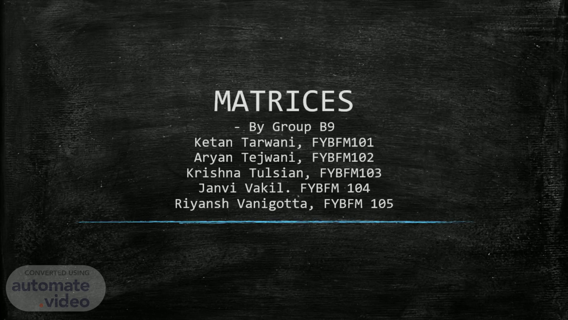 MATRICES - By Group B9 Ketan Tarwani, FYBFM101 Aryan Tejwani, FYBFM102 Krishna Tulsian, FYBFM103 Janvi Vakil. FYBFM 104 Riyansh Vanigotta, FYBFM 105
