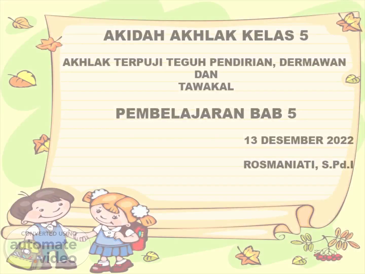AKIDAH AKHLAK KELAS 5 AKHLAK TERPUJI TEGUH PENDIRIAN, DERMAWAN DAN TAWAKAL PEMBELAJARAN BAB 5 13 DESEMBER 2022 ROSMANIATI, S.Pd.I.