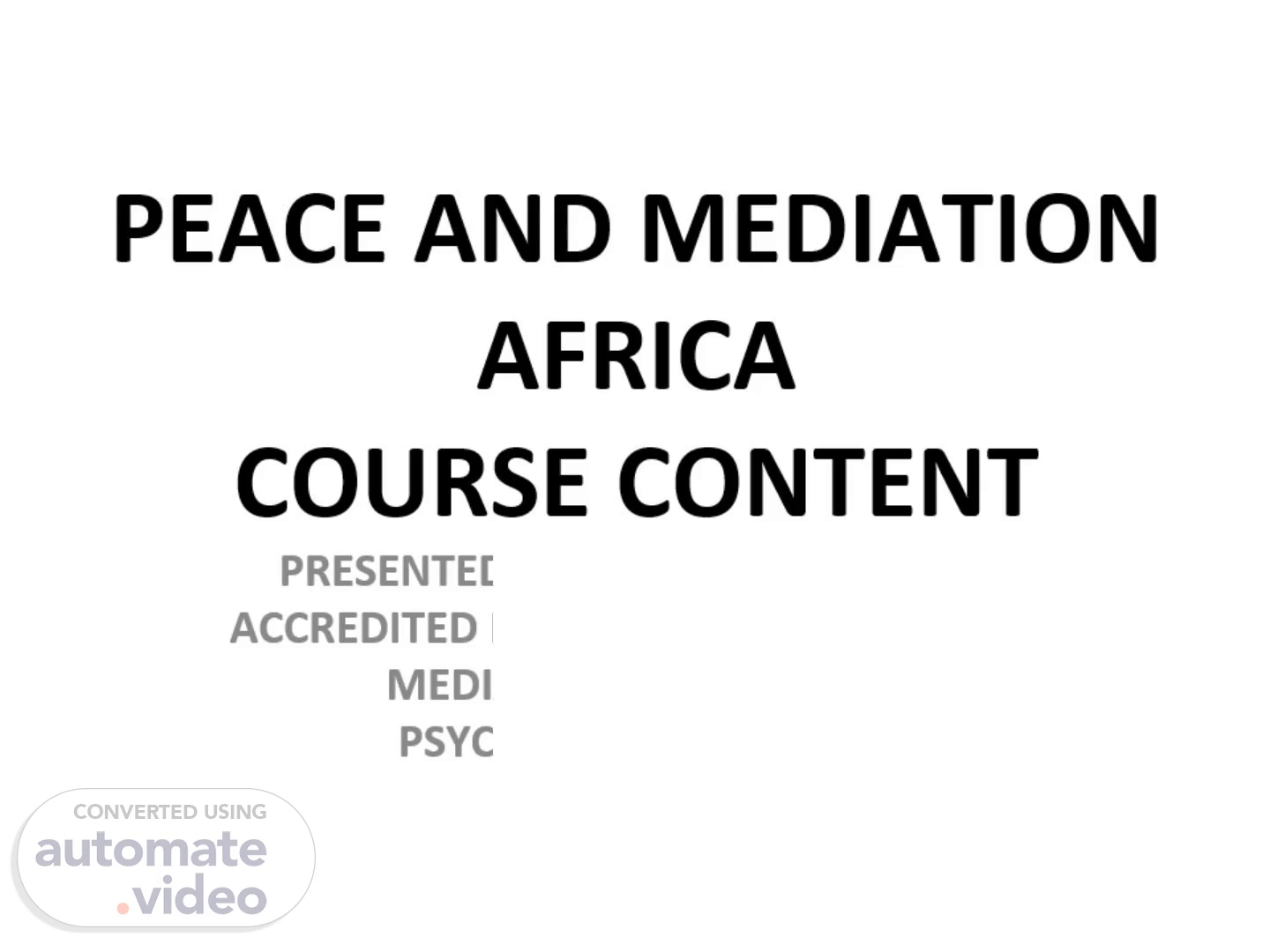 PEACE AND MEDIATION AFRICA COURSE CONTENT. PRESENTED BY Joseph Maina Frezhar ACCREDITED MEDIATOR/COURT ANNEXED MEDIATOR/COUNSELLING PSYCHOLOGIST/TRAINER.