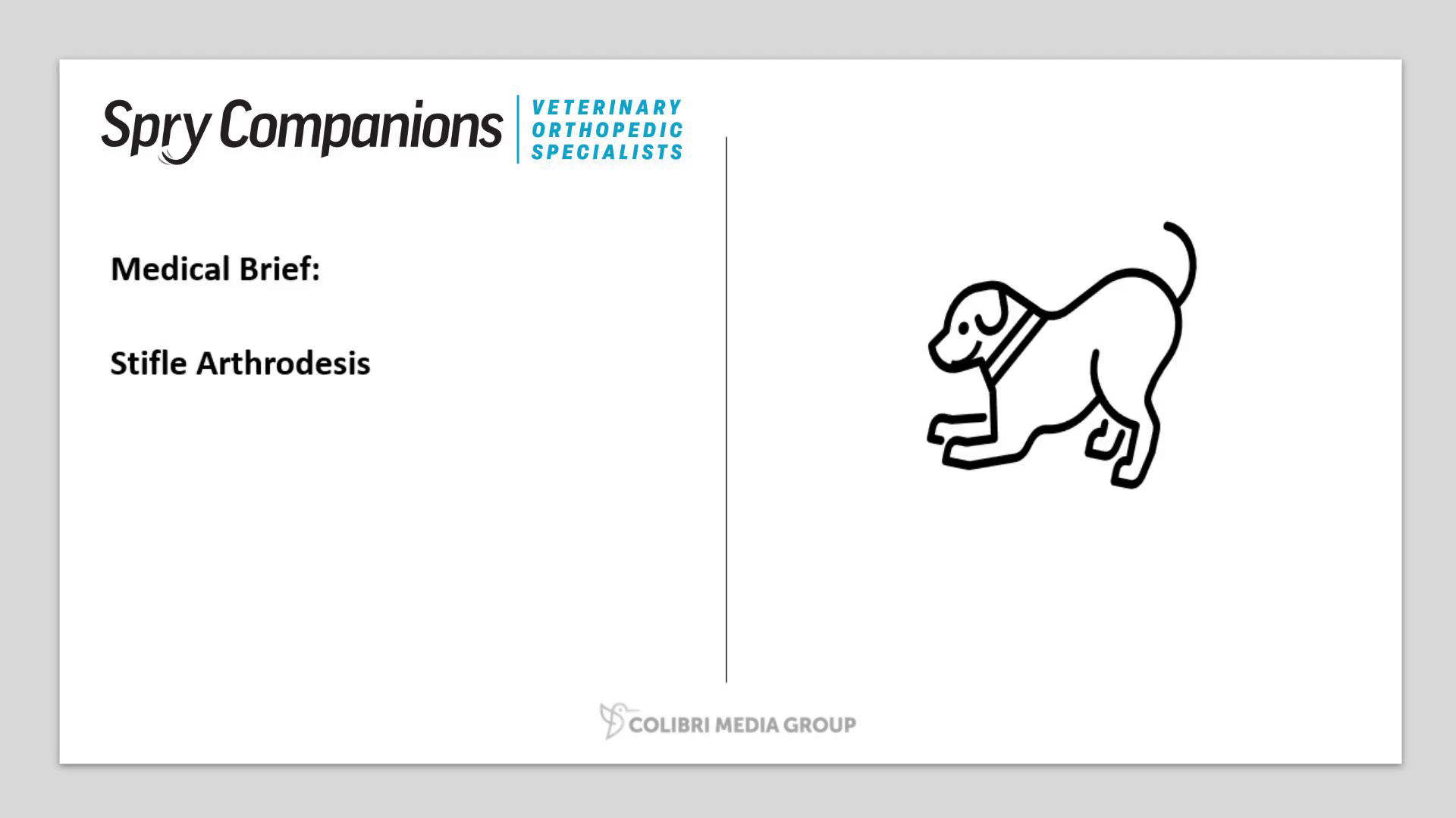 [Audio] Medical Brief Stifle Arthrodesis This Medical Brief will give a short explanation of a Stifle arthrodesis, (S J A ) also known as stifle joint fusion..