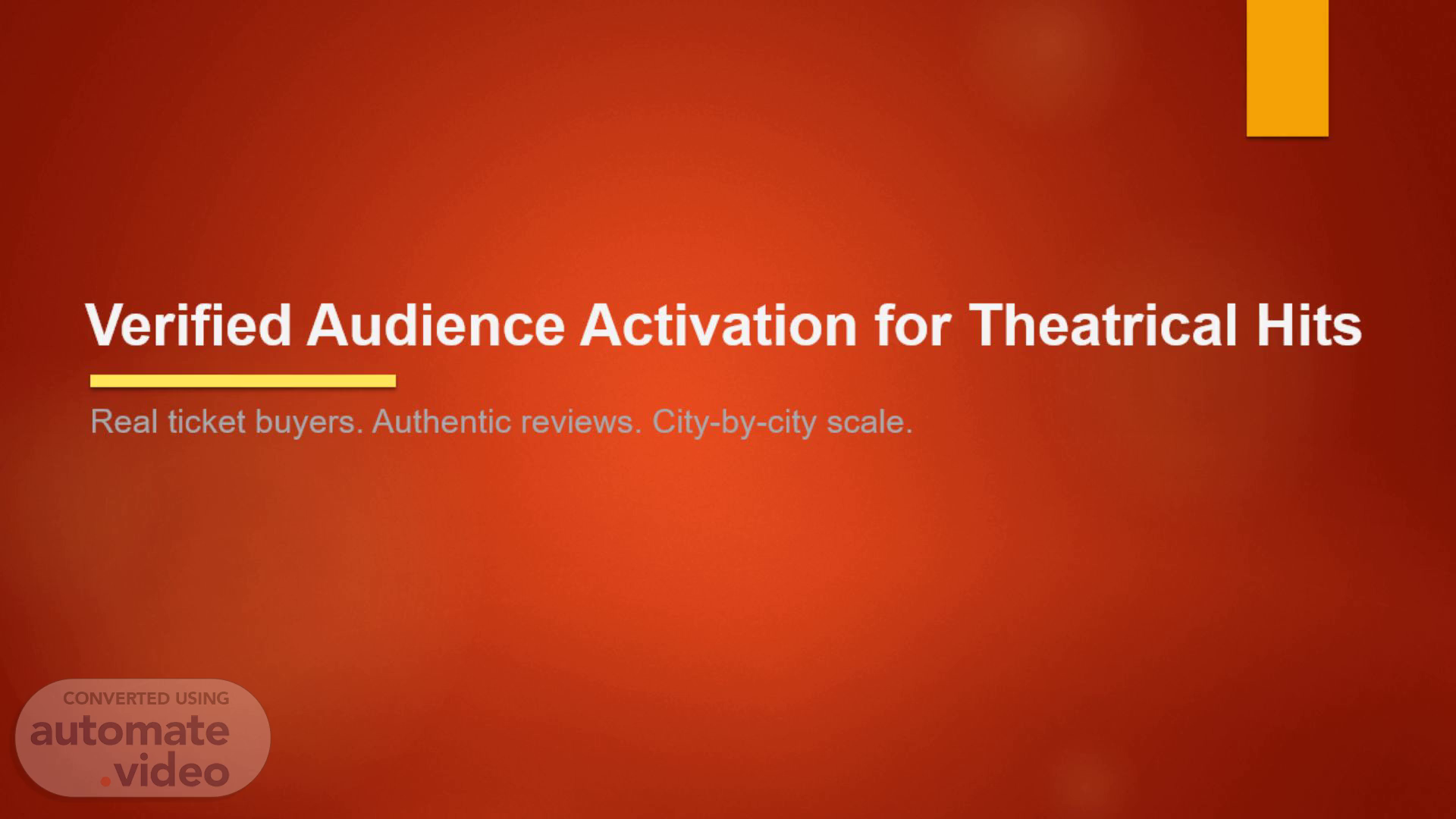 [Audio] Verified Audience Activation for Theatrical Hits Real ticket buyers. Authentic reviews. City-by-city scale. Present as compliance-first partner. Replace subtitle or add client name if needed..