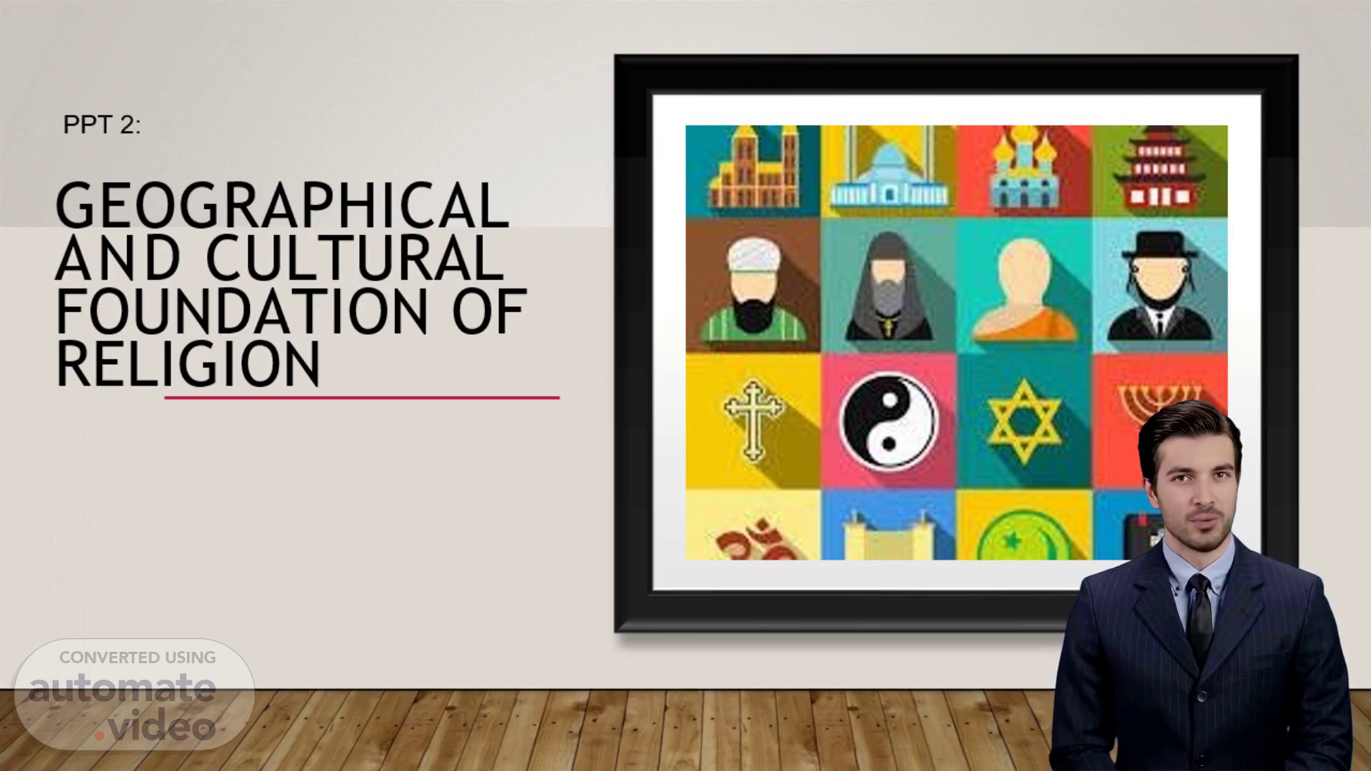 [Audio] Religion plays an important role in how we view right and wrong. It can be a powerful influencer of our moral values and when it is heavily relied upon to define what is right and wrong it can lead to a lack of understanding of others and their beliefs. Understanding the connection between religion culture and geography and how they each affect each other is complex. This presentation has hopefully shed some light on this intricate relationship. Thank you for your attention..