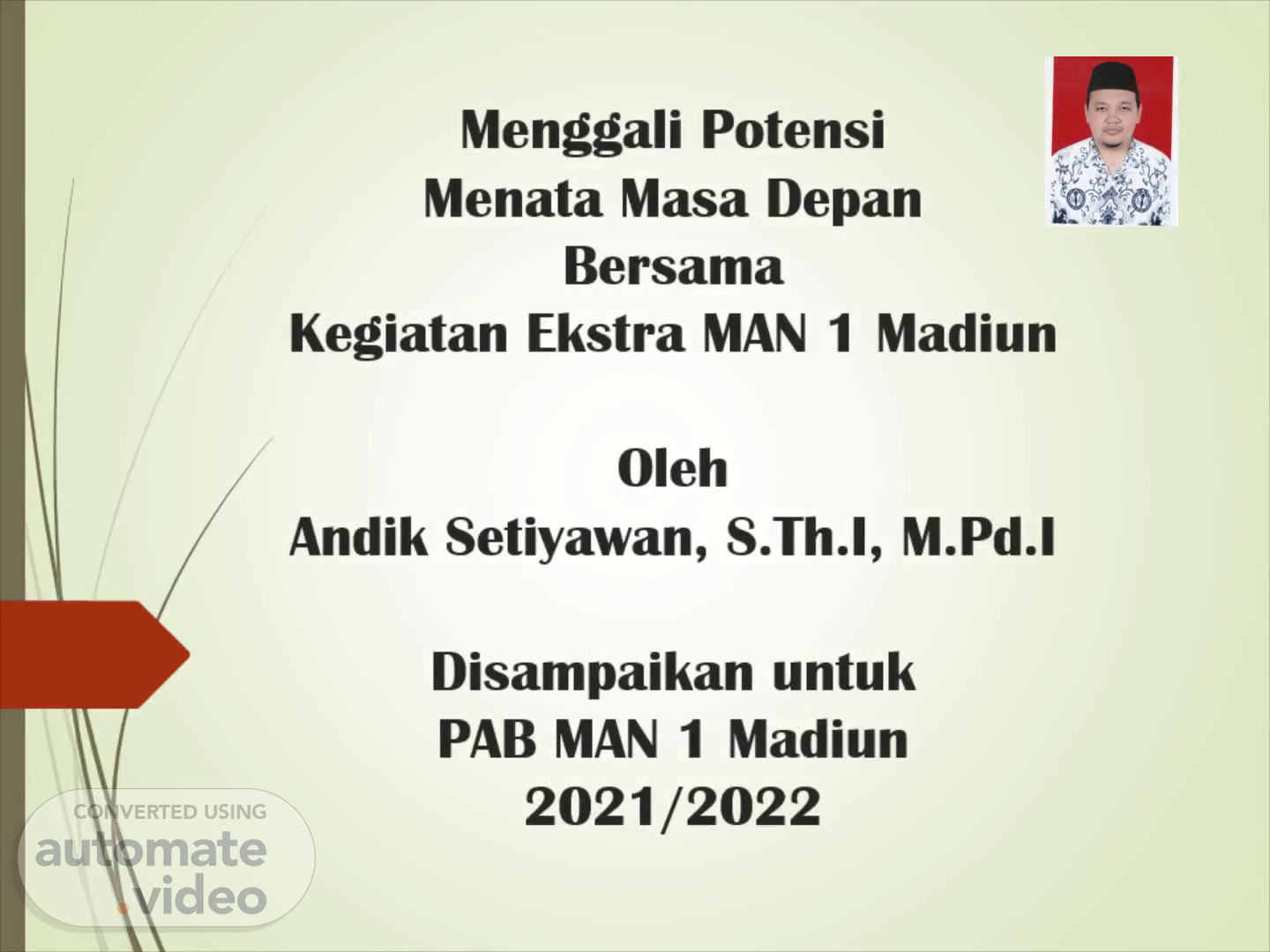 Menggali Potensi Menata Masa Depan Bersama Kegiatan Ekstra MAN 1 Madiun Oleh Andik Setiyawan, S.Th.I, M.Pd.I Disampaikan untuk PAB MAN 1 Madiun 2021/2022.