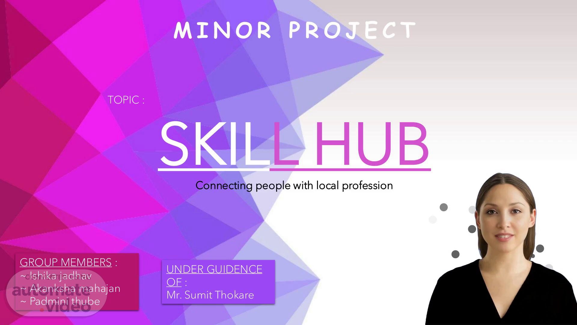 [Virtual Presenter] Skill Hub is an online platform that connects individuals with local professionals who offer a wide range of skills and expertise. The platform provides a convenient and accessible way for people to find and engage with skilled experts in their community. Users can browse through profiles of available professionals, view their portfolios, read reviews, and make connections. By using Skill Hub, individuals can gain access to valuable knowledge, insights, and guidance from experienced professionals. Furthermore, the platform offers opportunities for networking, collaboration, and professional growth. Through Skill Hub, individuals can develop new skills, expand their professional network, and stay up-to-date with industry trends. The platform also facilitates learning and skill-sharing among users, allowing them to acquire new knowledge and expertise..