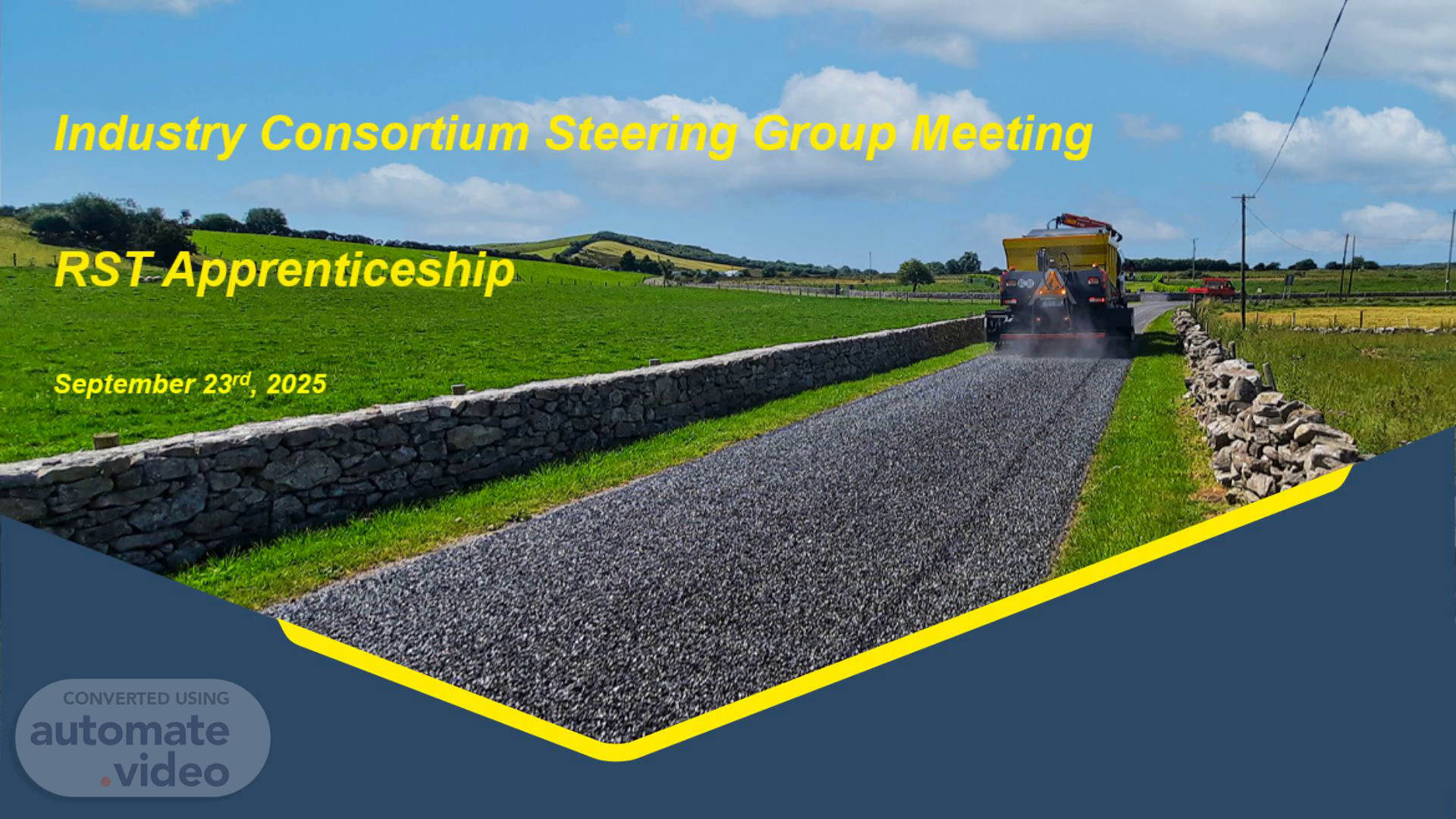 [Audio] Hello everyone, and welcome to today's Industry Consortium Steering Group Meeting. As a Higher Education teacher and member of the consortium, I am happy to share our progress on the proposed apprenticeship program for Road Surface Technicians. Our main focus has been on developing a skilled and efficient workforce, while also keeping costs in mind for road maintenance. In this meeting, I will give an overview of the on-the-job and off-the-job modules, as well as a summary of the off-the-job components. Let's begin..