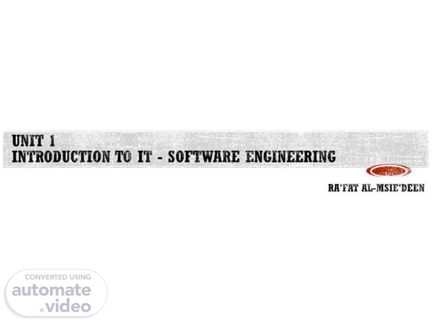 UNIT 1 INTRODUCTION TO IT - SOFTWARE ENGINEERING RATAT AL-MSIE'DEEN.